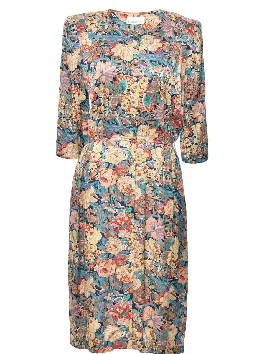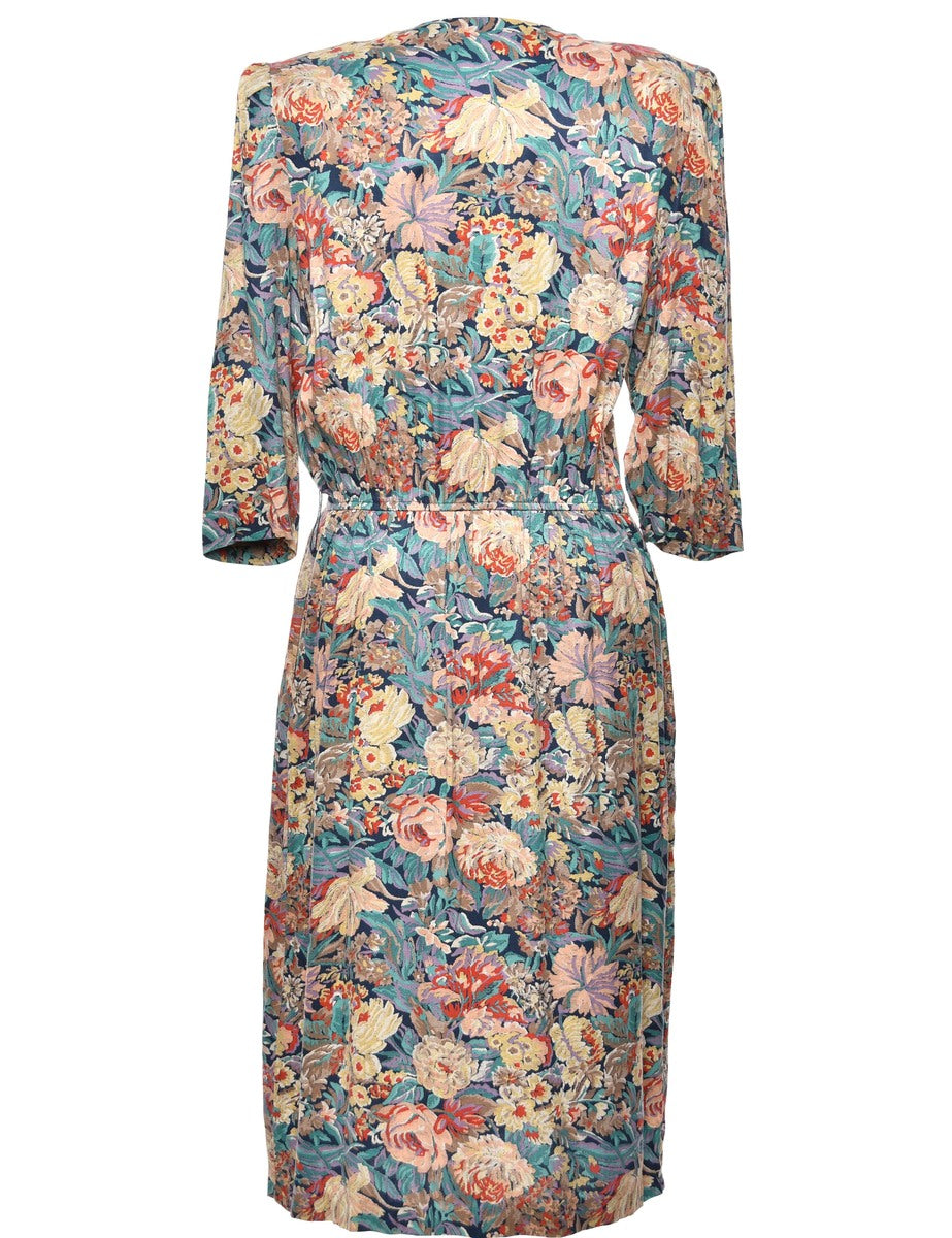 Floral print dress comes in multi-colour with built in shoulder pads.