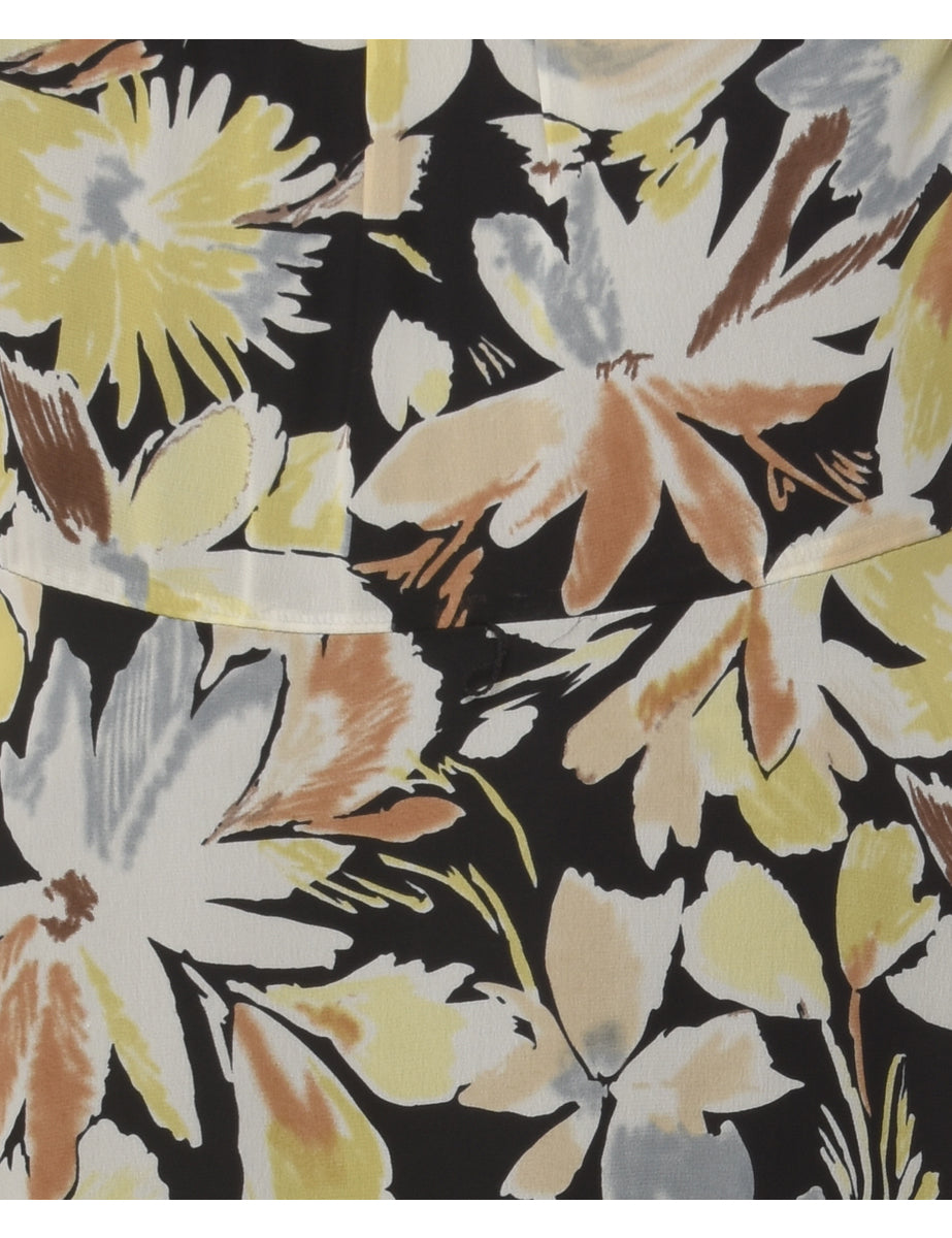 Vintage Floral Print Sleeveless Dress - L