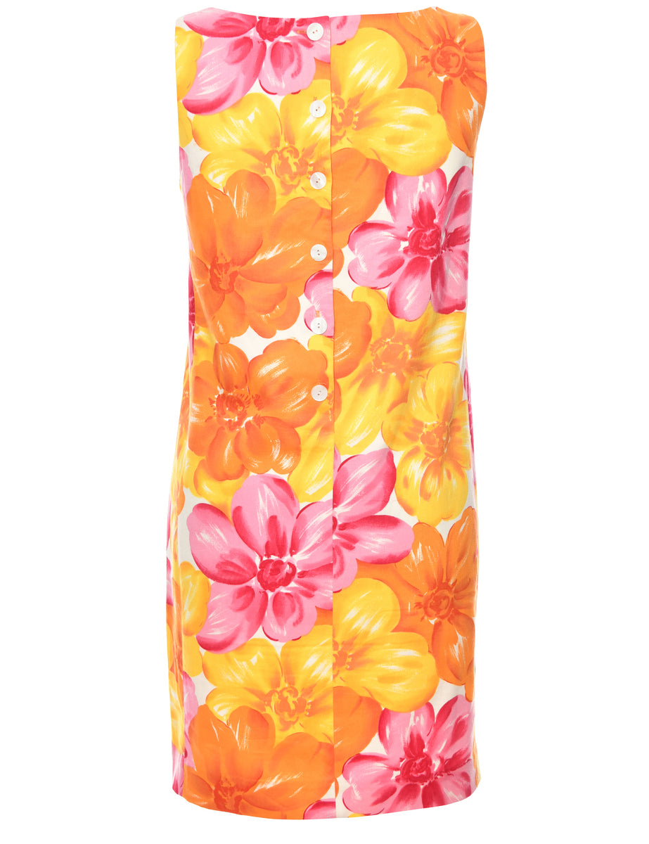 Floral print dress in yellow, pink & orange.