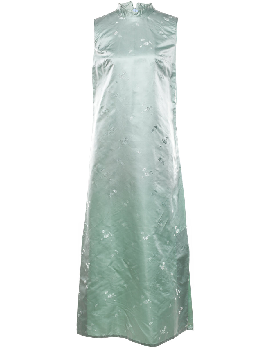 Jacquard dress in aqua blue with cheongsam.