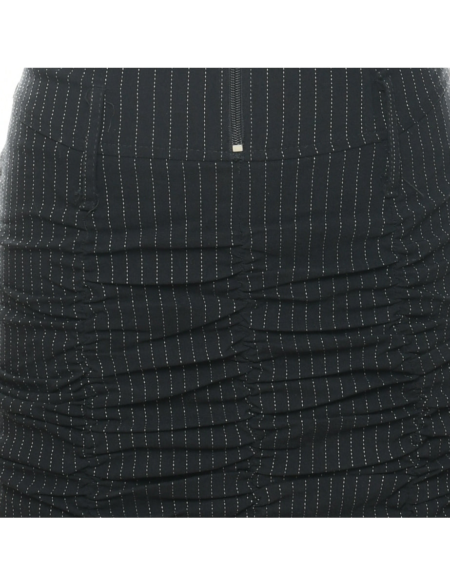 Pinstriped dress from the in black with ruched detailing.
