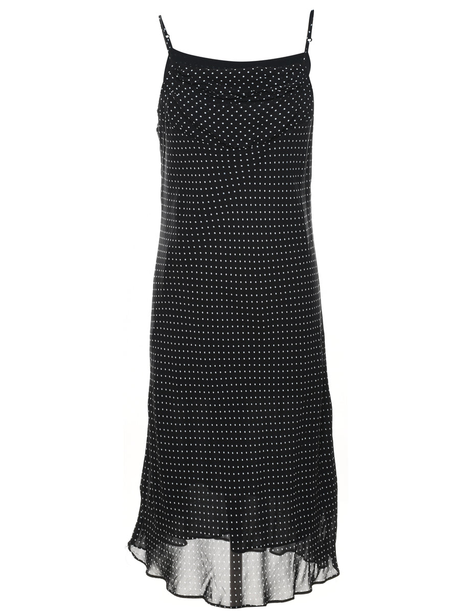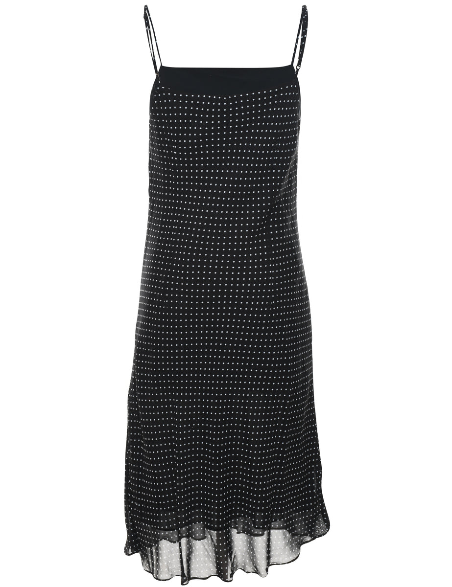 Polka dot dress in black with full lining and square neck.