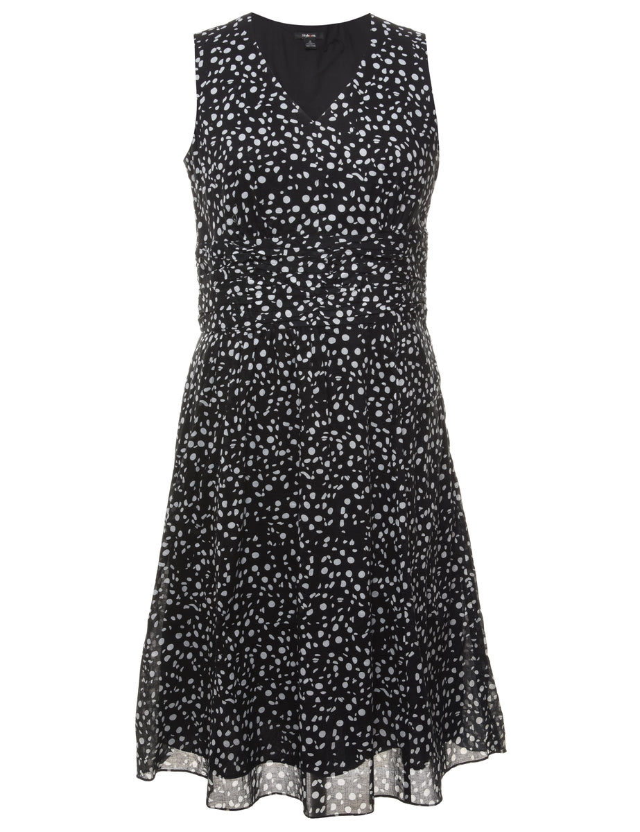 Vintage Polka Dot Print Black & White Dress - L
