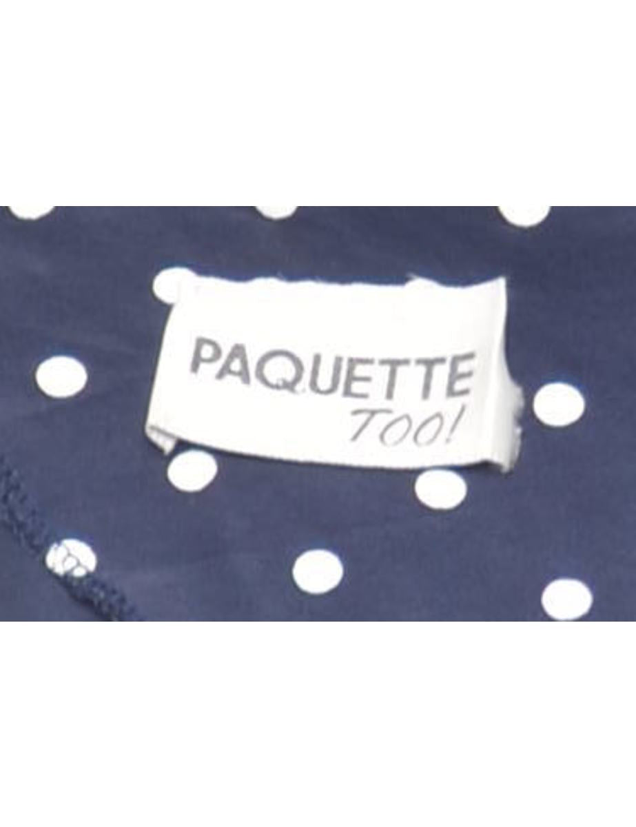 Polka dots mini dress. Comes in navy with removable shoulder pads.