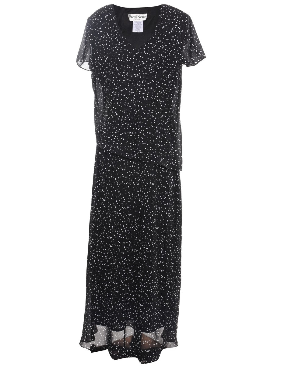 Shift dress from the in black with spots, full lining and removable shoulder pads.