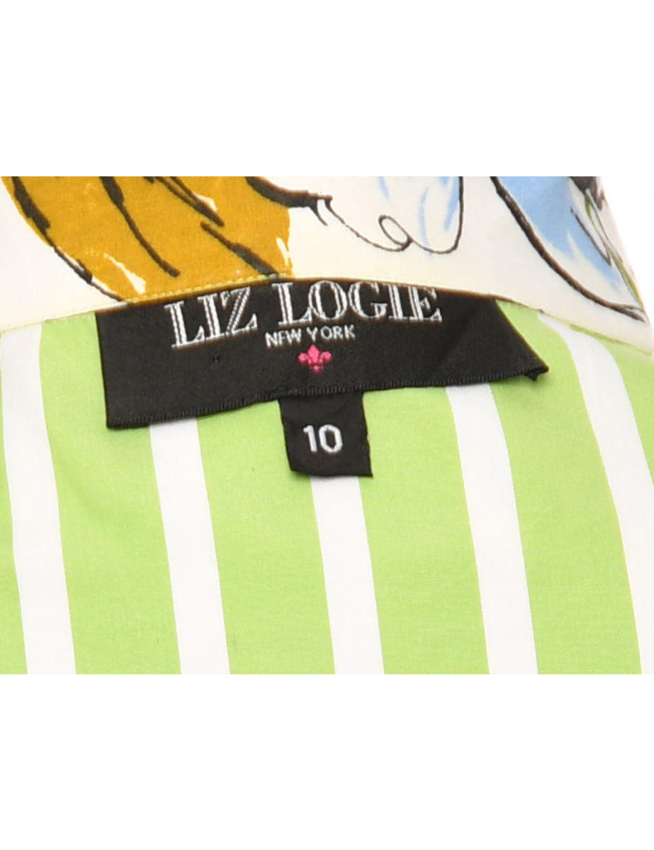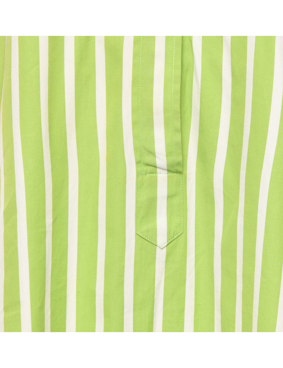 Vintage Striped Green & White Contrast Trim Dress - L