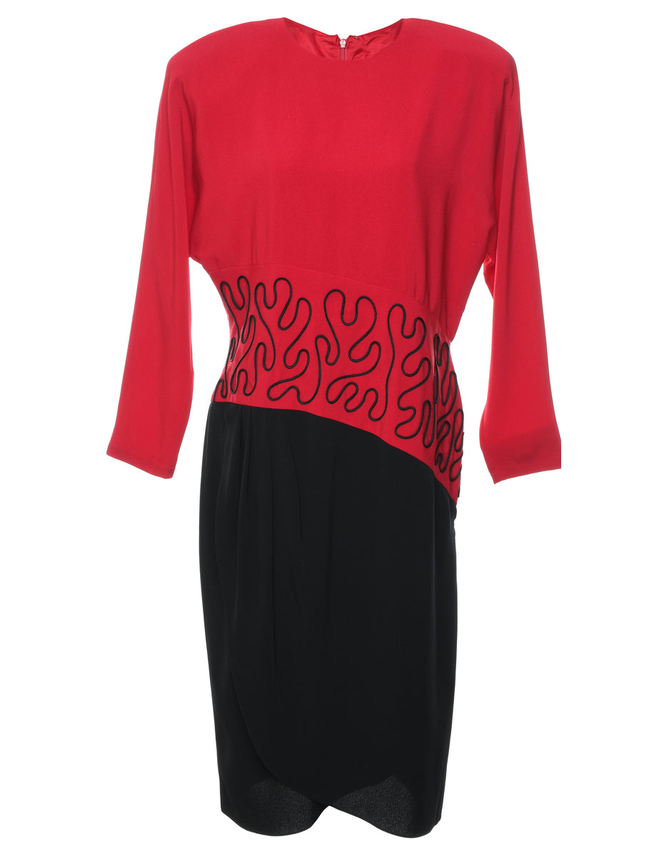 Two tone dress in black & red with full lining and removable shoulder pads.