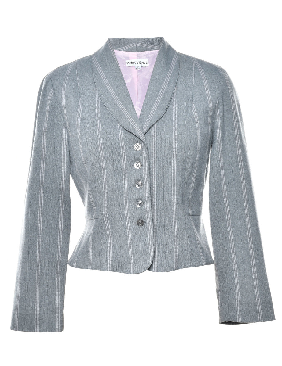 Pinstriped blazer in grey with full lining and built in shoulder pads. From the brand Danny & Nicole.