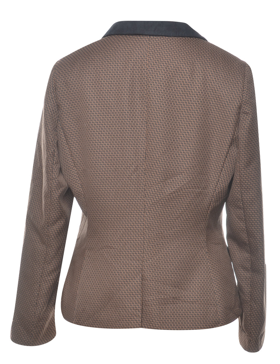 Dogtooth blazer in brown with full lining and built in shoulder pads.