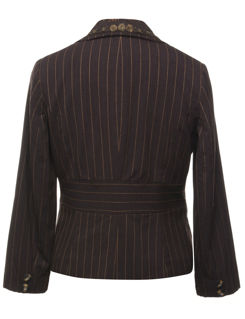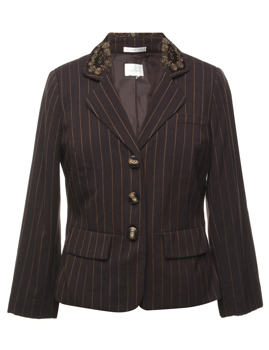 Pinstriped blazer lurex thread pattern comes in dark brown with full lining and built in shoulder pads.