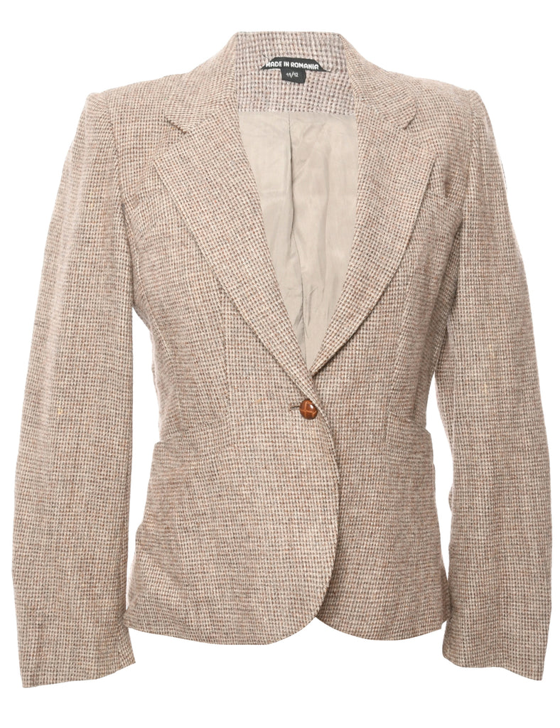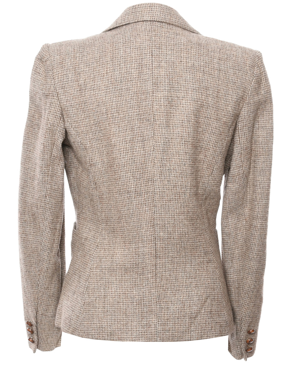 Single breasted blazer in grey with two pockets and built in shoulder pads.