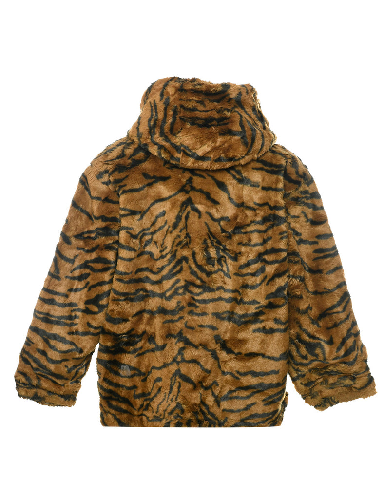 Animal print faux fur jacket. Comes in brown with multiple pockets.