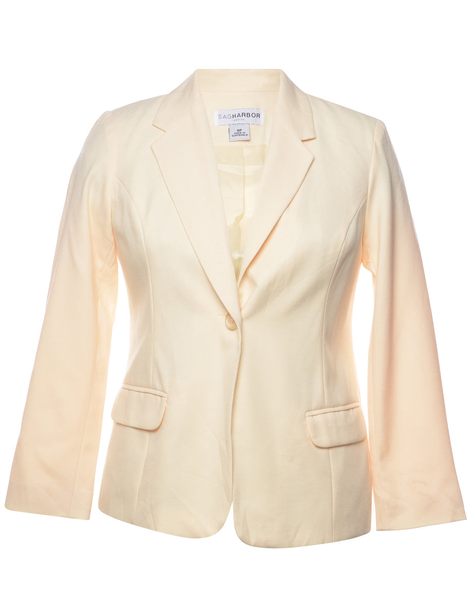 Single breasted Petite ivory blazer with full lining and built in shoulder pads.