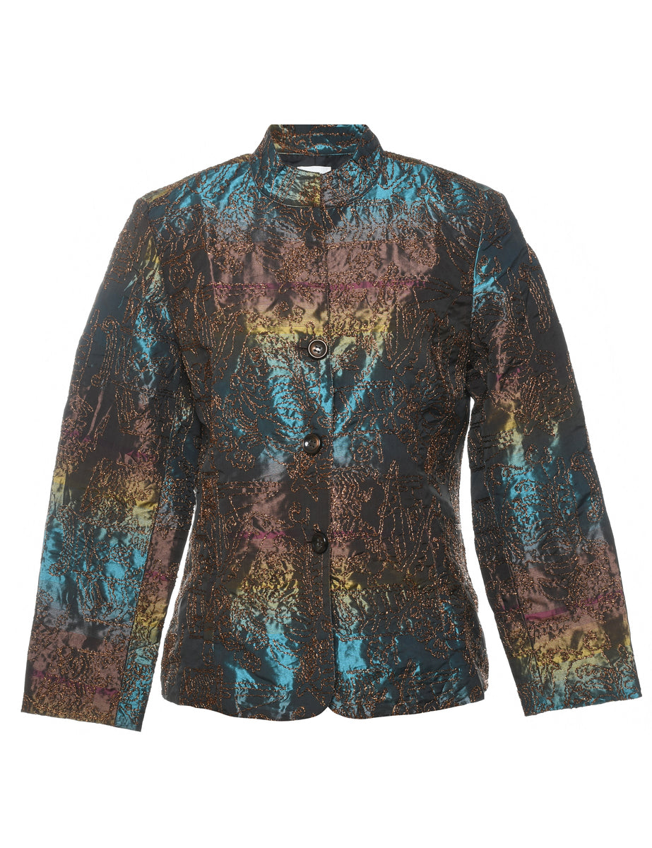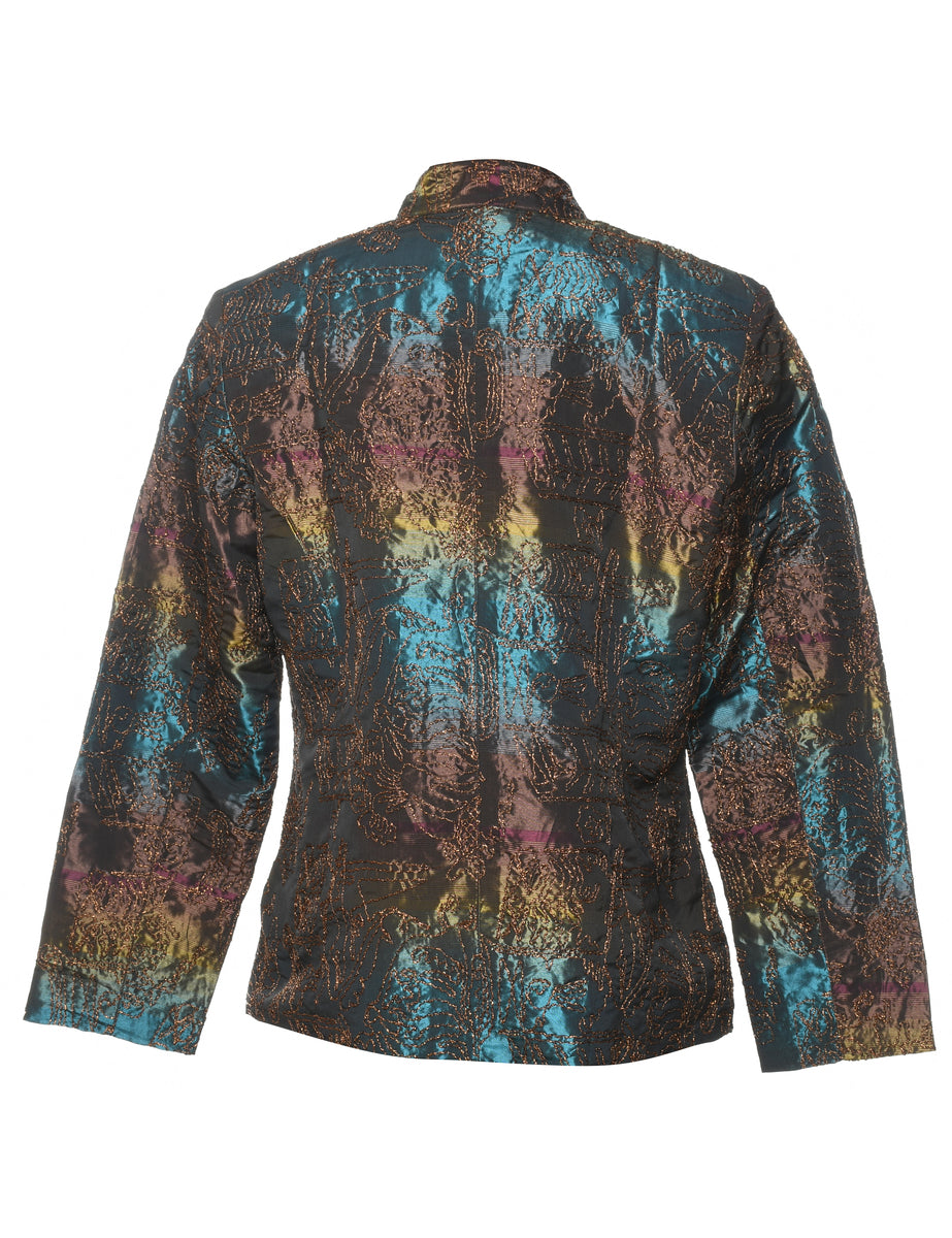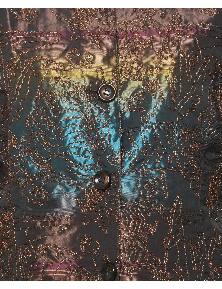 Vintage Metallic Rainbow Embroidered Evening Jacket - M