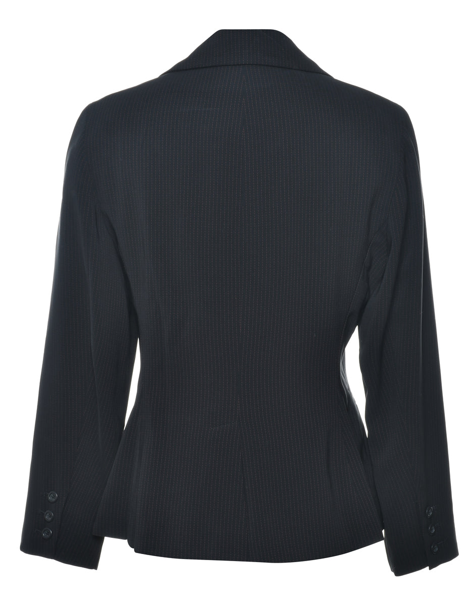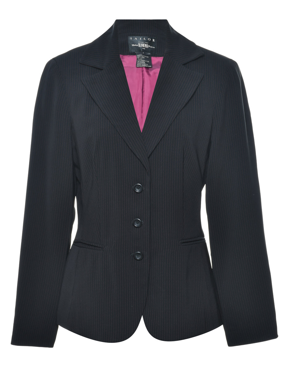 Pinstriped blazer. Comes in black with full lining and built in shoulder pads.