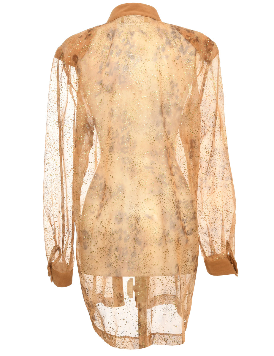 Glittery jacket in brown sheer sparkly with built-in shoulder pads.