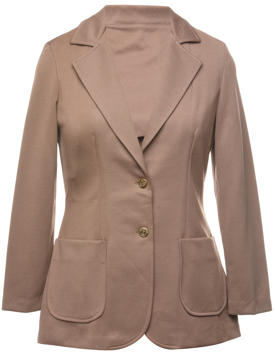 Single breasted blazer comes in brown with two pockets.