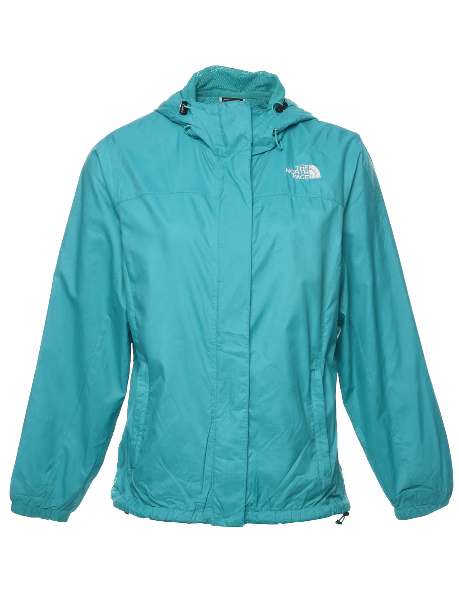 The North Face zip front jacket comes in green with multiple pockets.