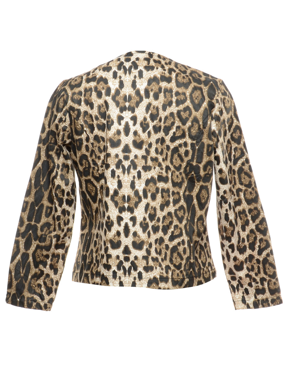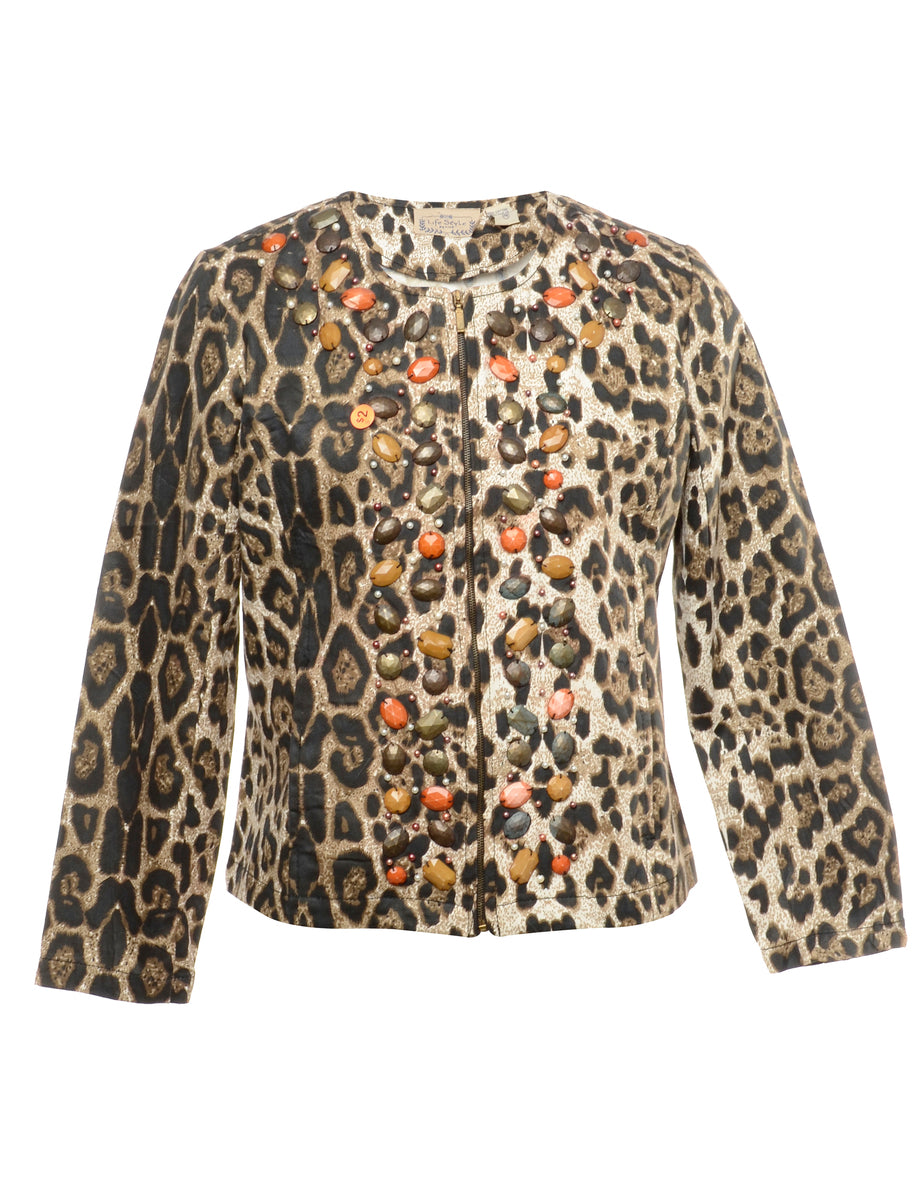 Zip front jacket. Comes in leopard print.