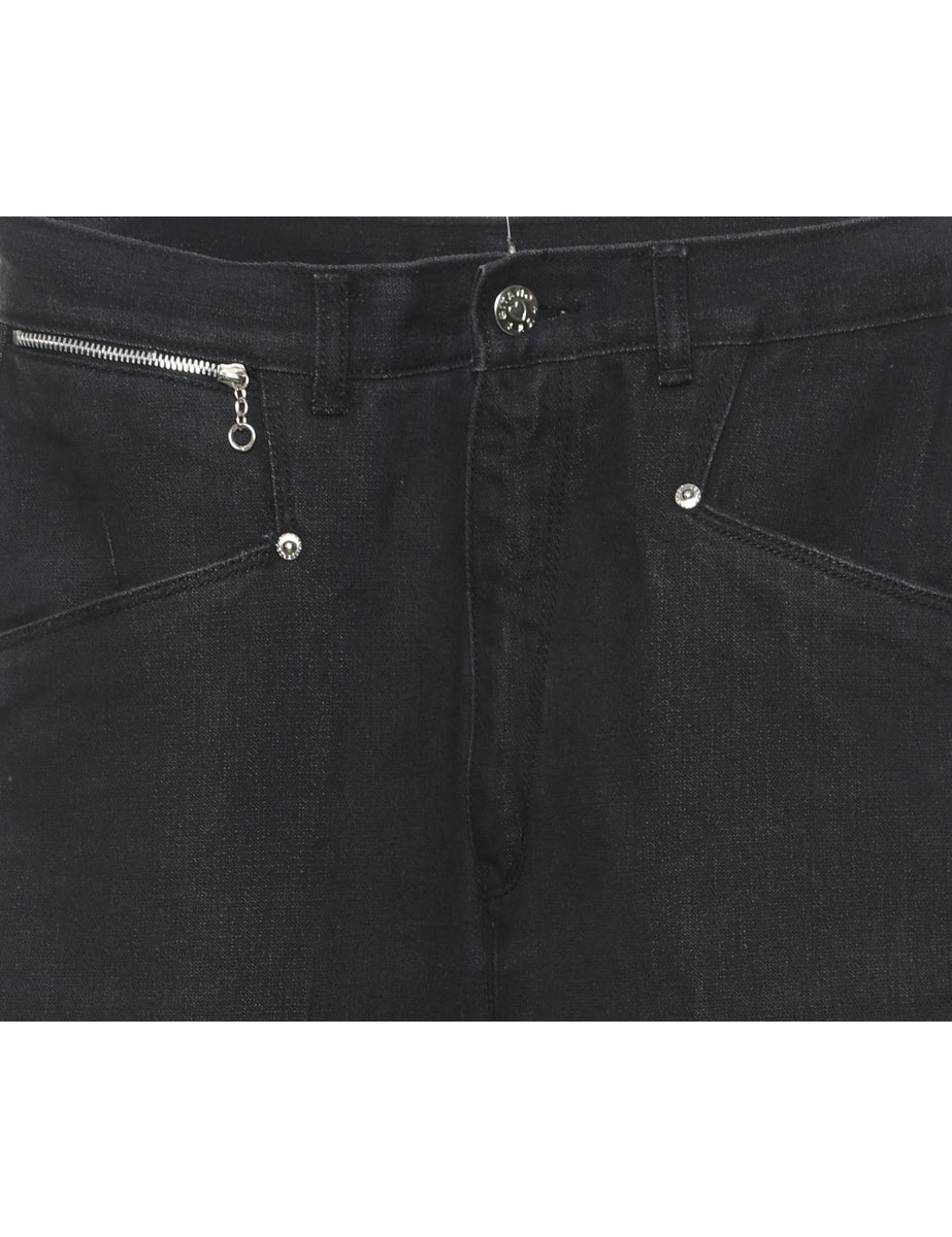 Black High Waist Zip-Front Tapered Jeans - W26 L26