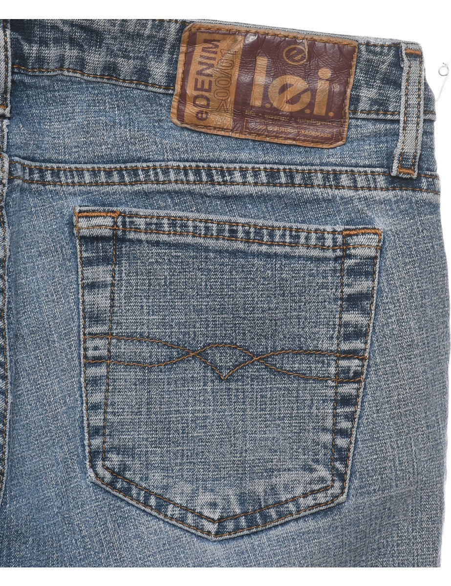 Faded wash flared Y2K Lei jeans complete with multiple pockets.