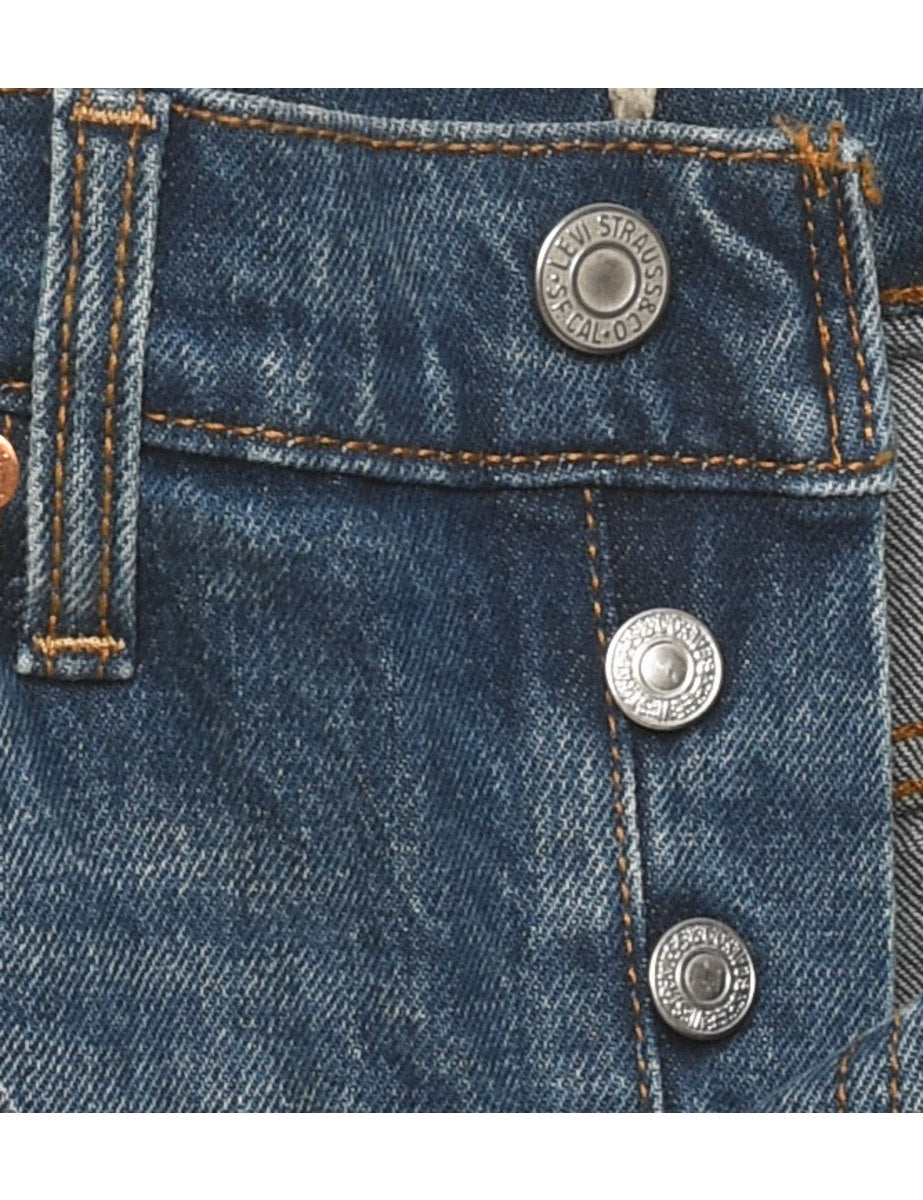 Straight leg levi's jeans comes in medium wash with multiple pockets.