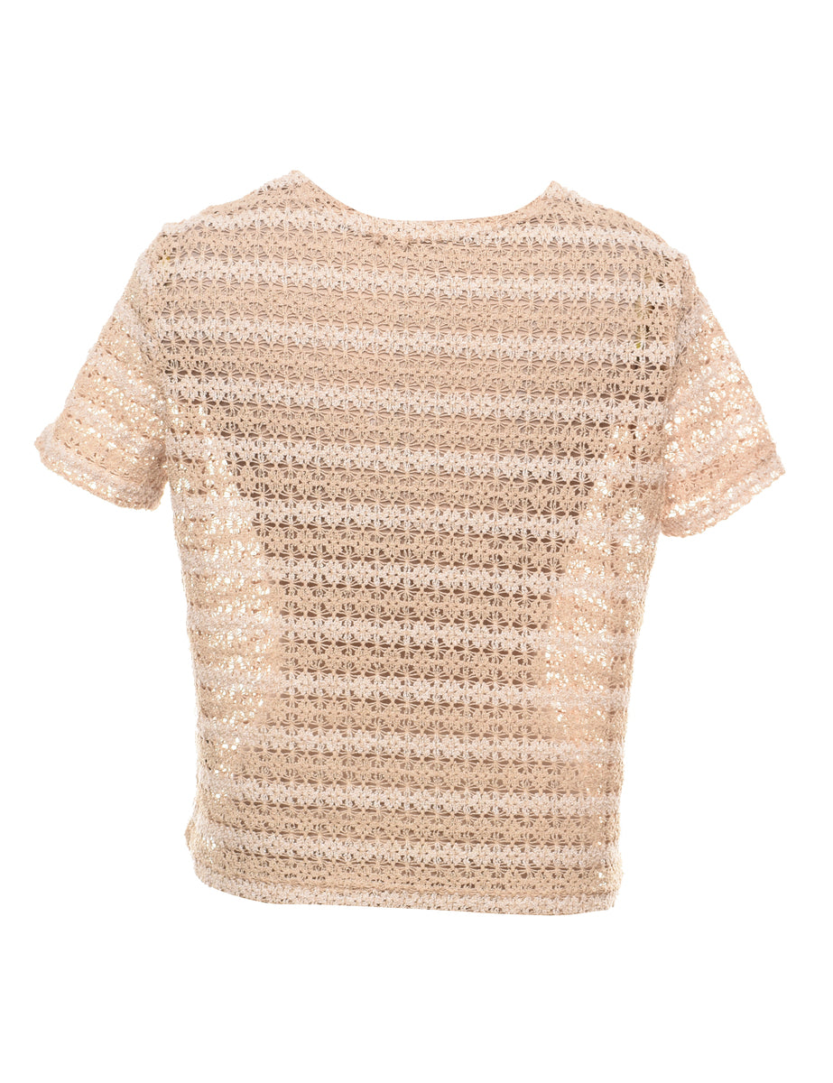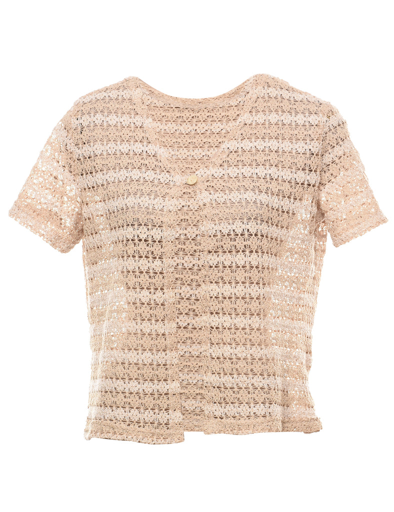 Beige Crochet Knit Cardigan - M