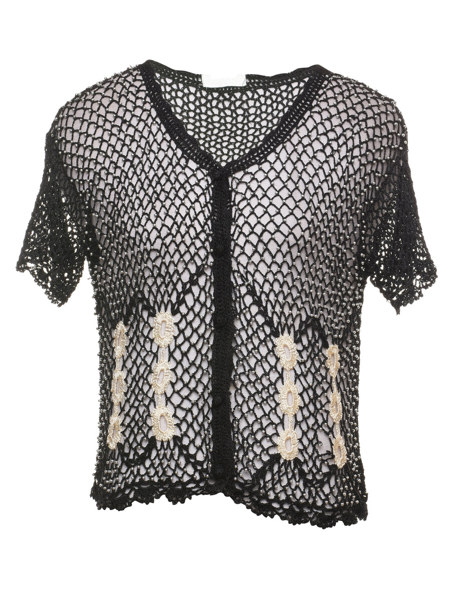 Button through cardigan from the in black with beading.