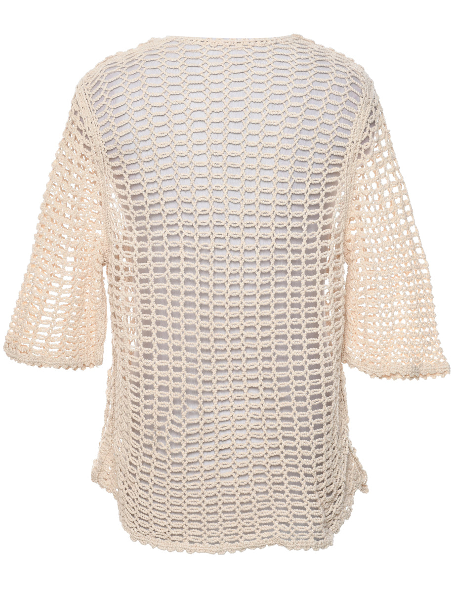 Vintage Crochet Beige Cardigan - XL