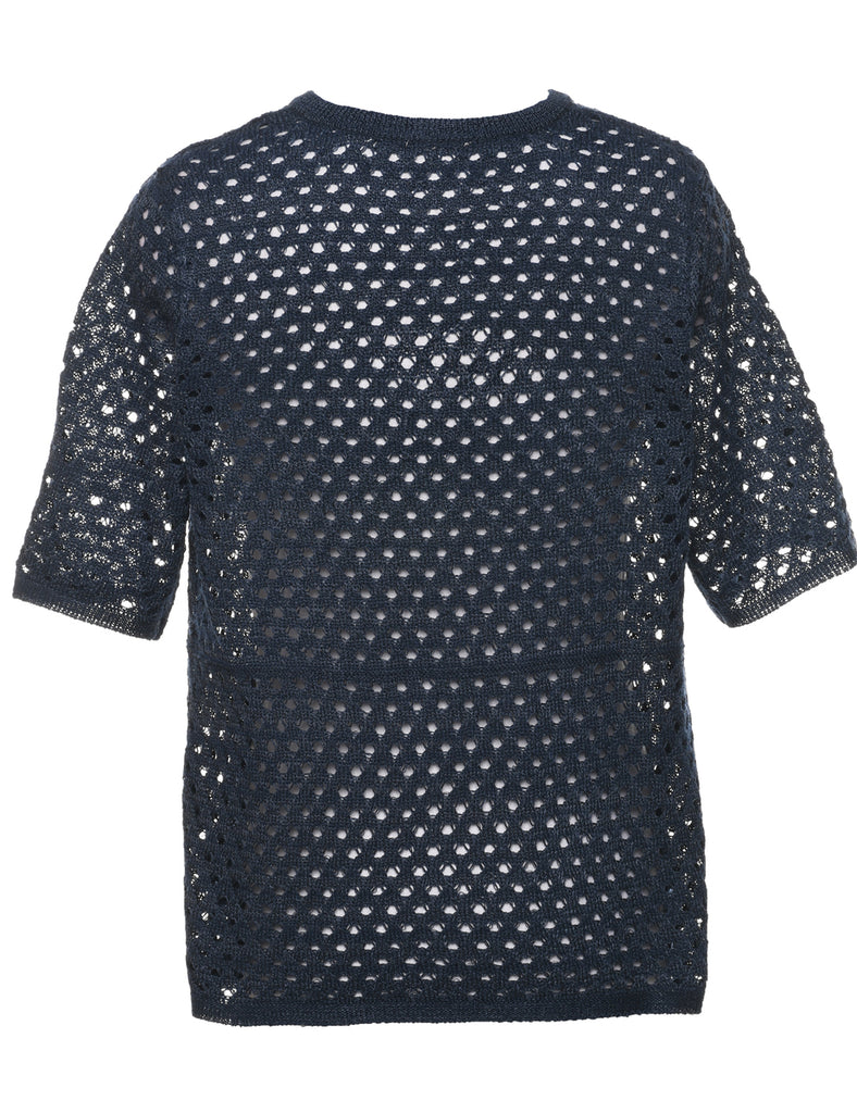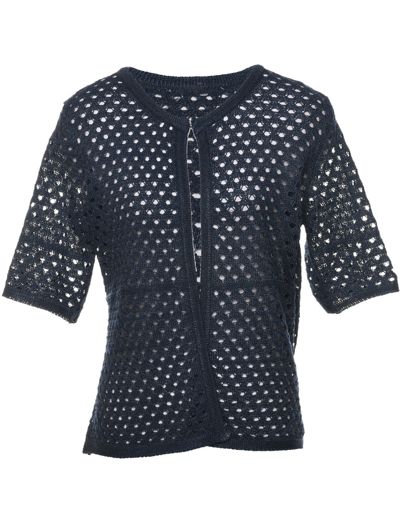 Short sleeve cardigan with crochet. Comes in navy with a round neck.