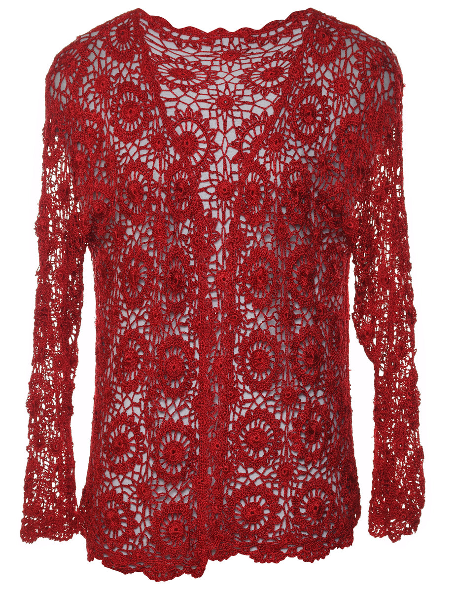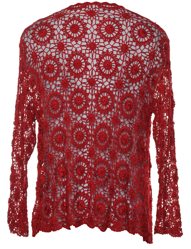 Crochet Red Cardigan - M