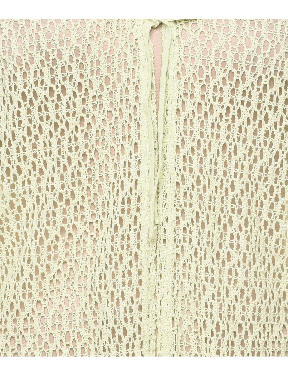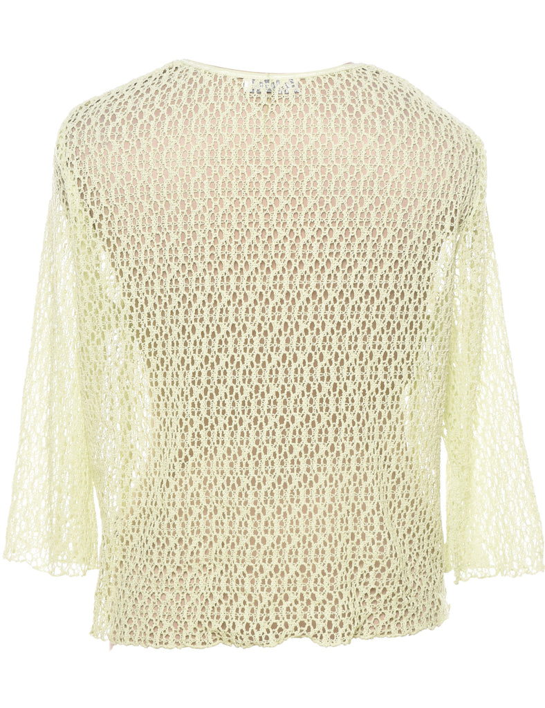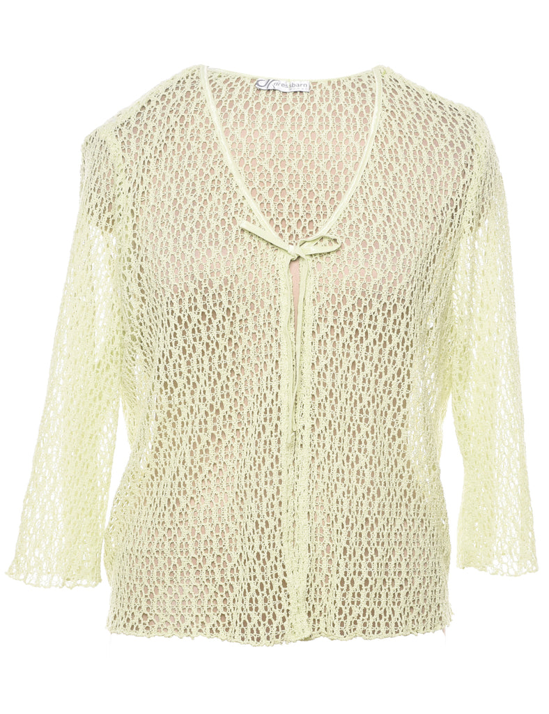 Cardigan with crochet from Dress Barn. Comes in lime green with tie feature and a v-neck.