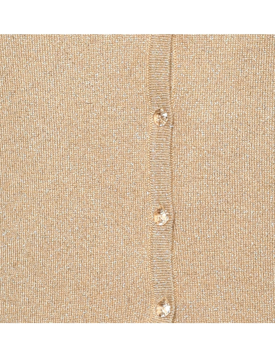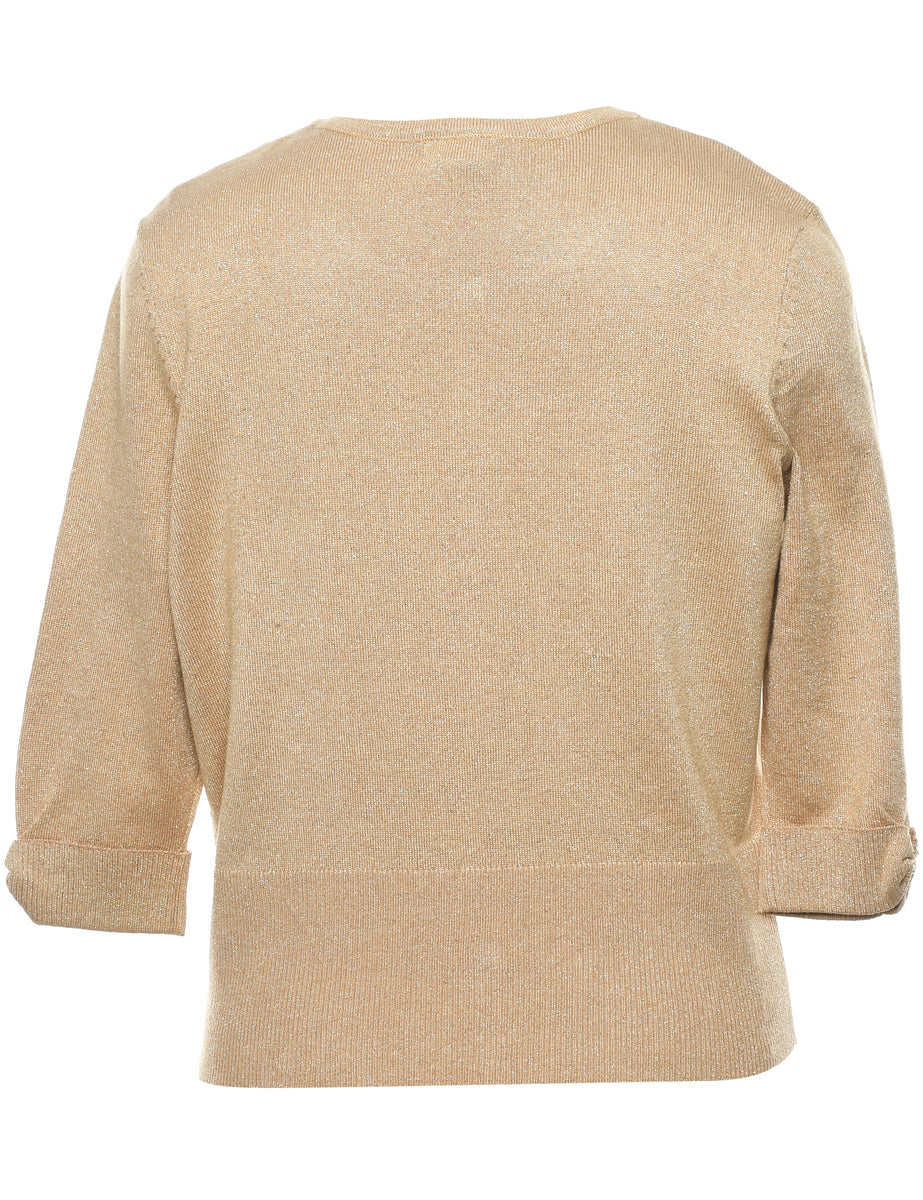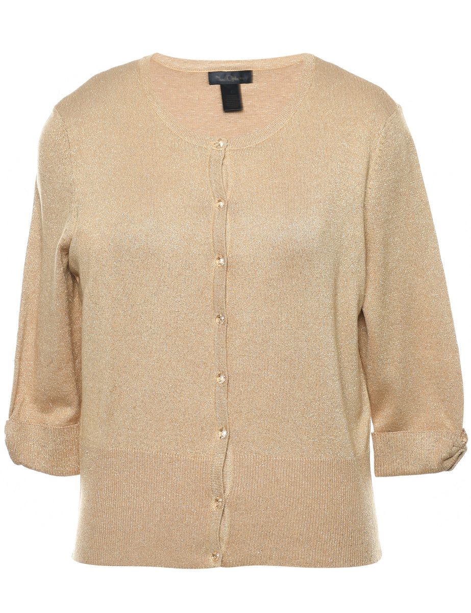 Lurex thread pattern cardigan. Comes in gold.