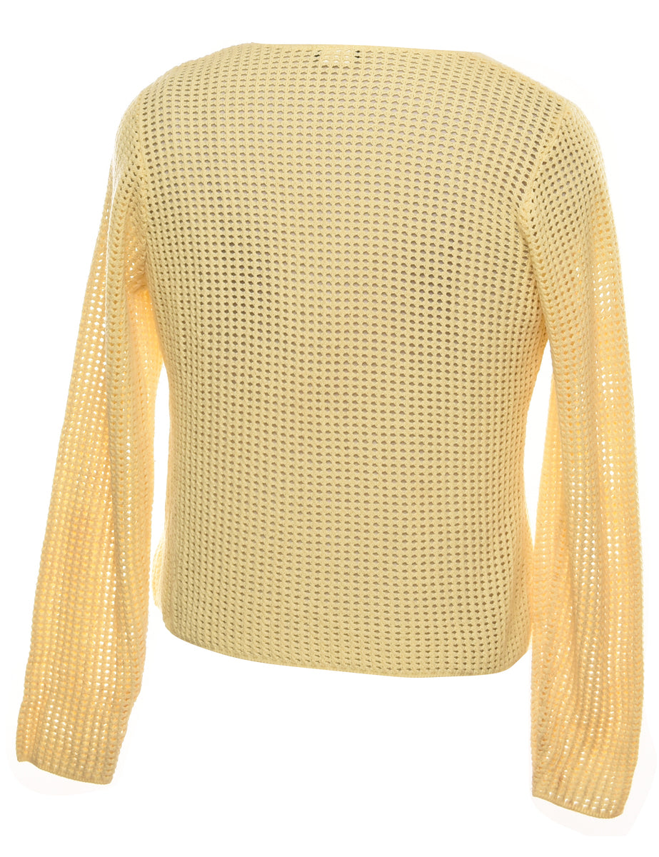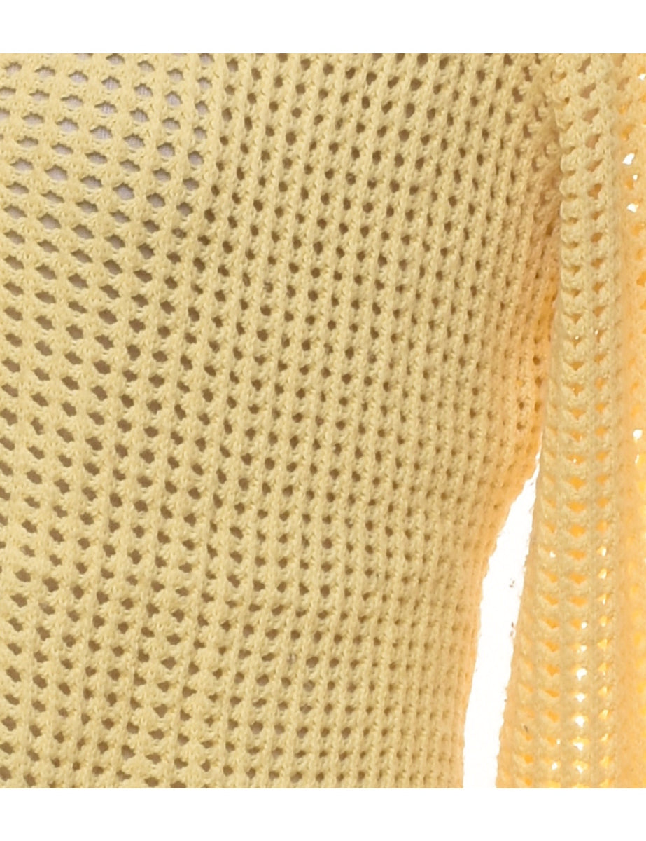 Pale Yellow Crochet Cardigan - M