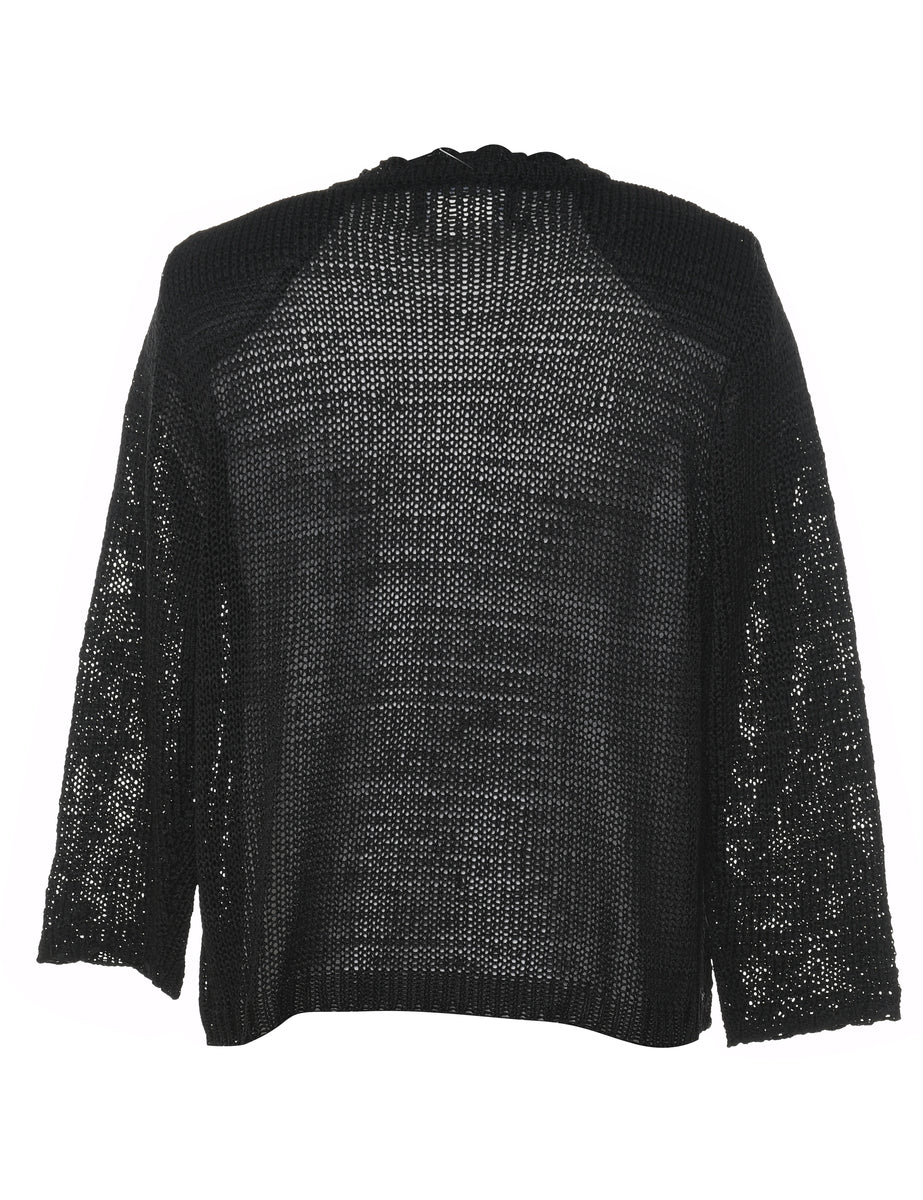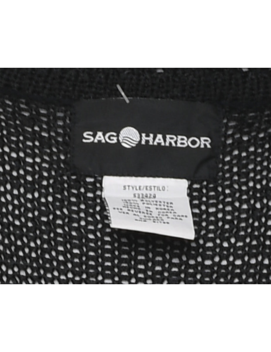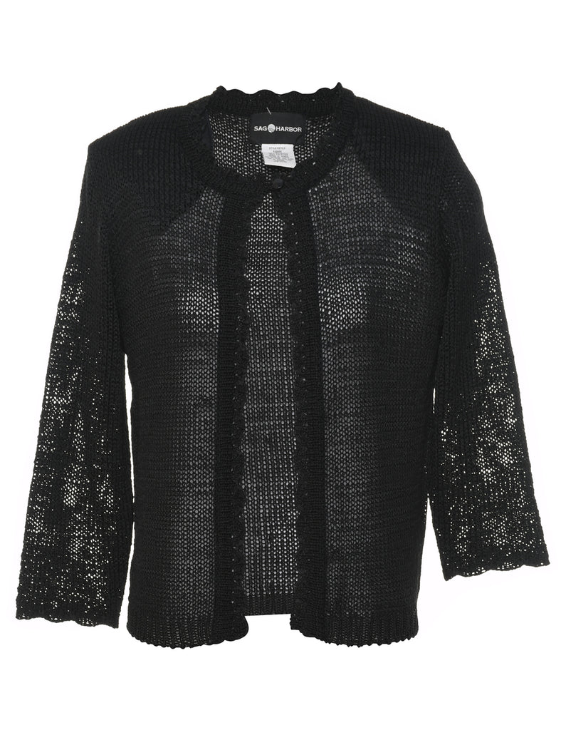 Classic cardigan with crochet from Sag Harbor. Comes in black with removable shoulder pads.