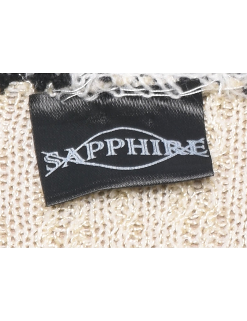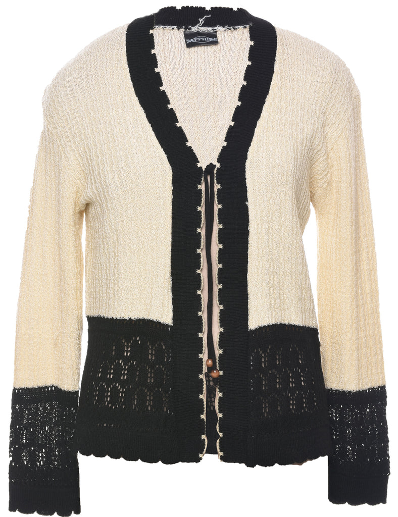 Two tone cardigan in off white & black with tie feature.