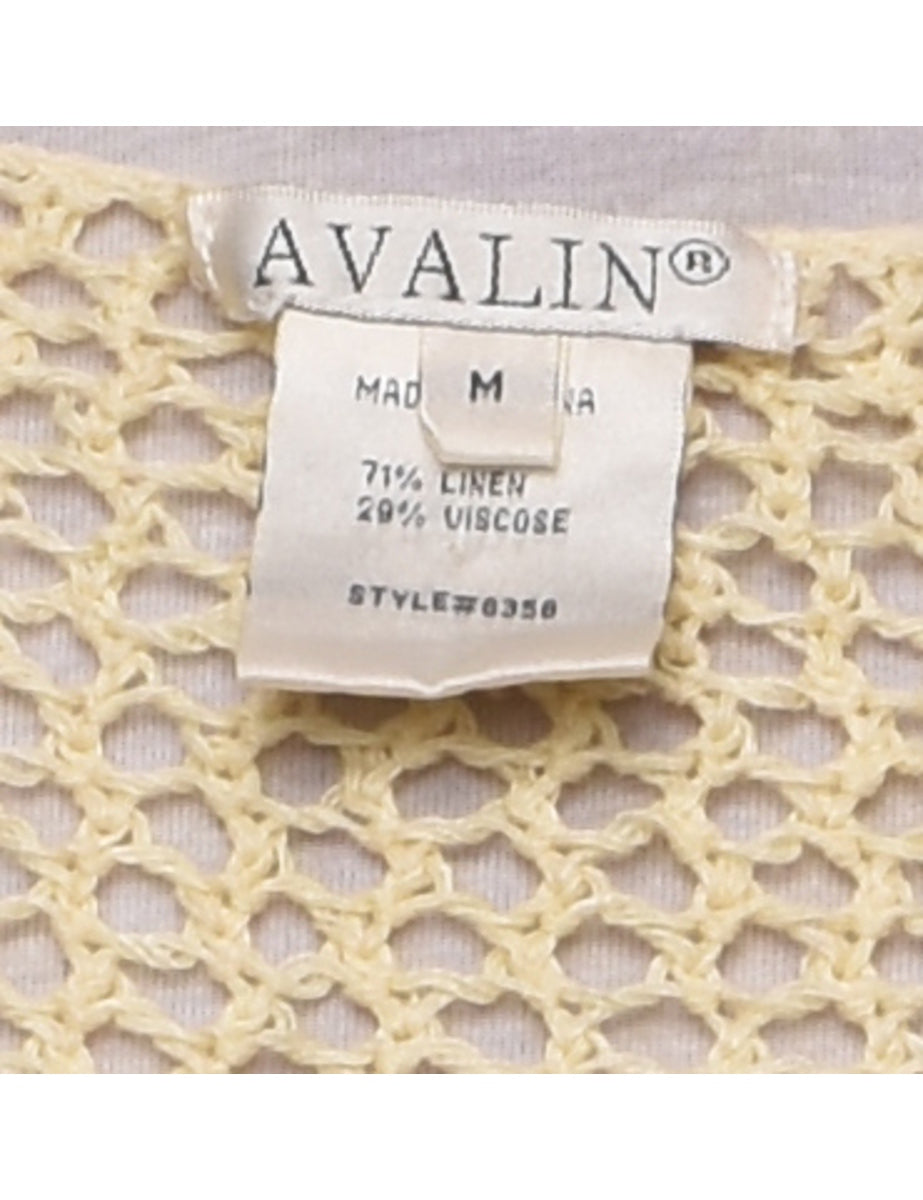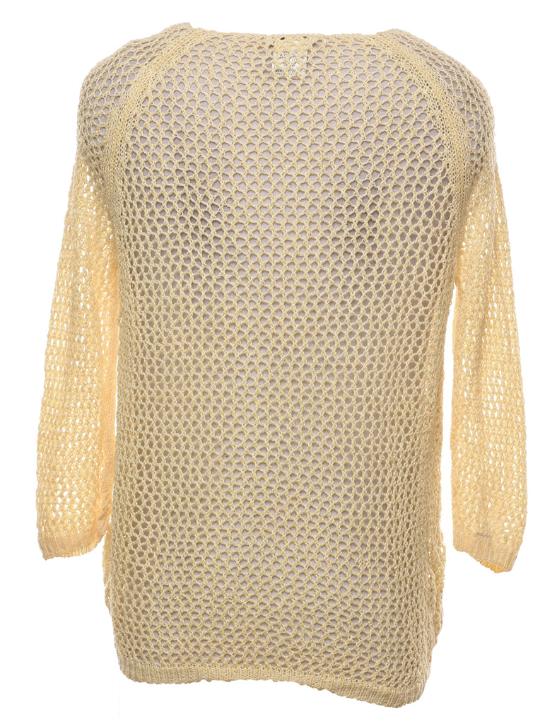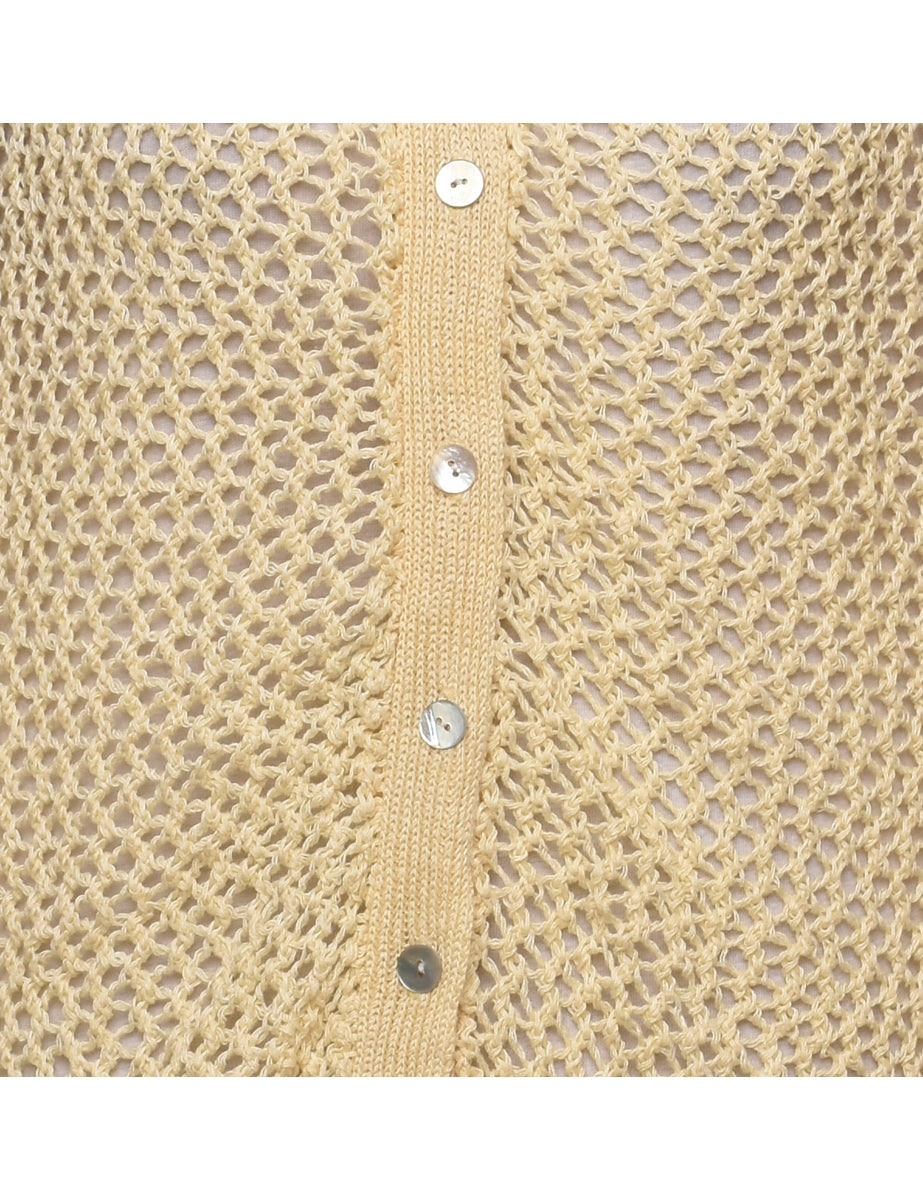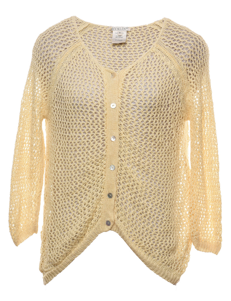 Yellow Button-Front Crochet Cardigan - M