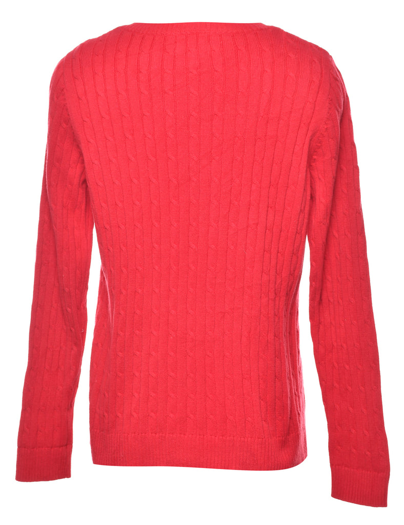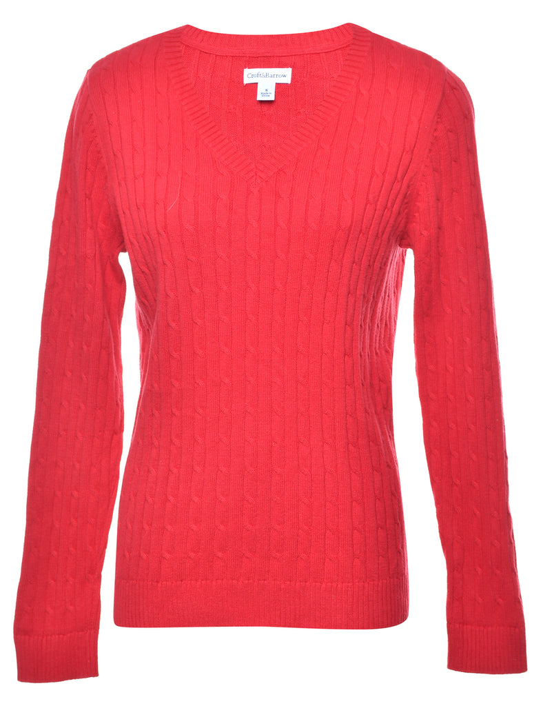 Croft & Barrow cable knit jumper in red with a v-neck.