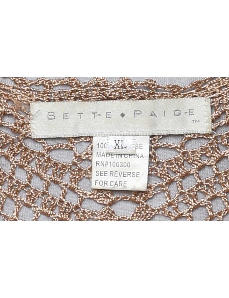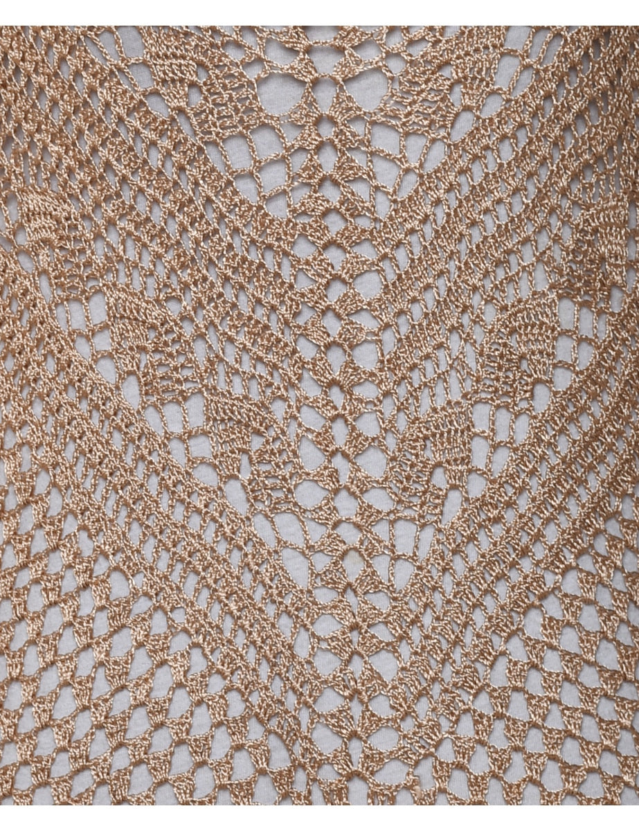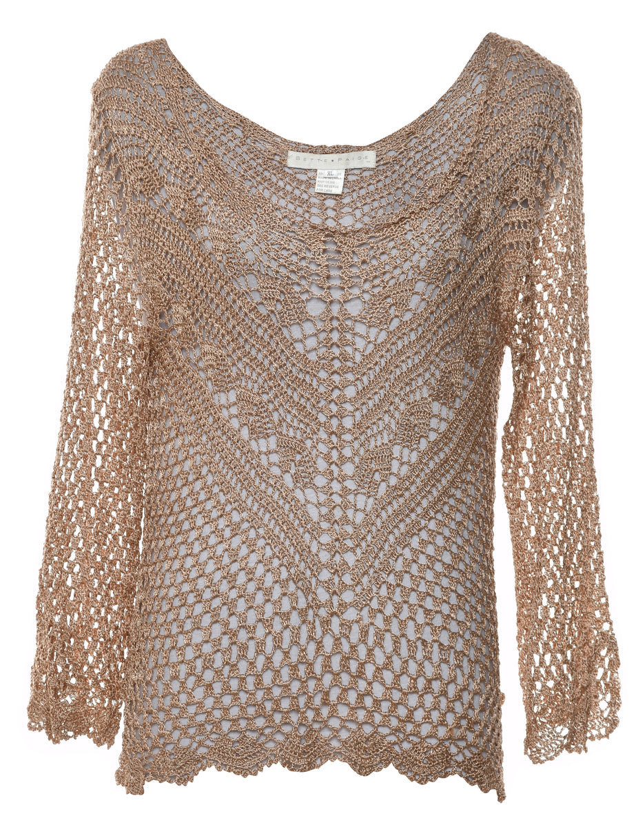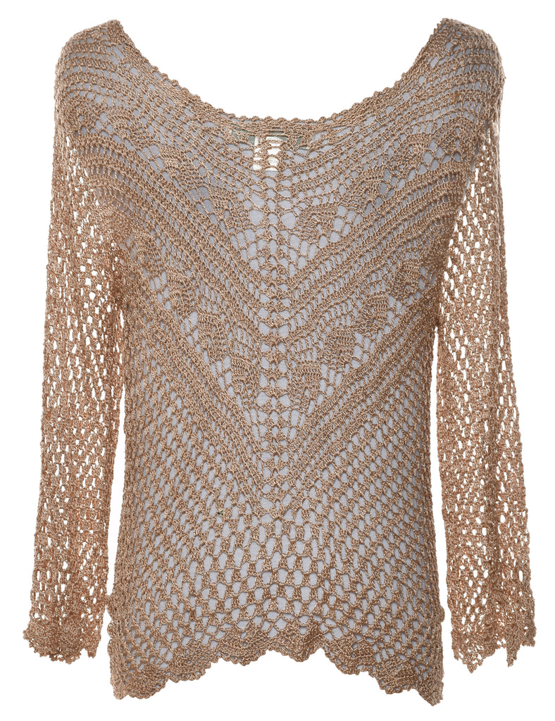 Classic jumper with crochet. Comes in light brown with a scalloped hem.