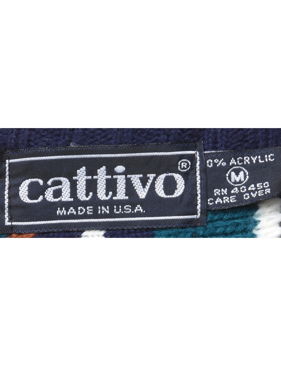 Patterned jumper. Comes in multi-colour with a crew neck and contrasting panels.The size label mentions M but based on the actual measurements we consider it a size S.