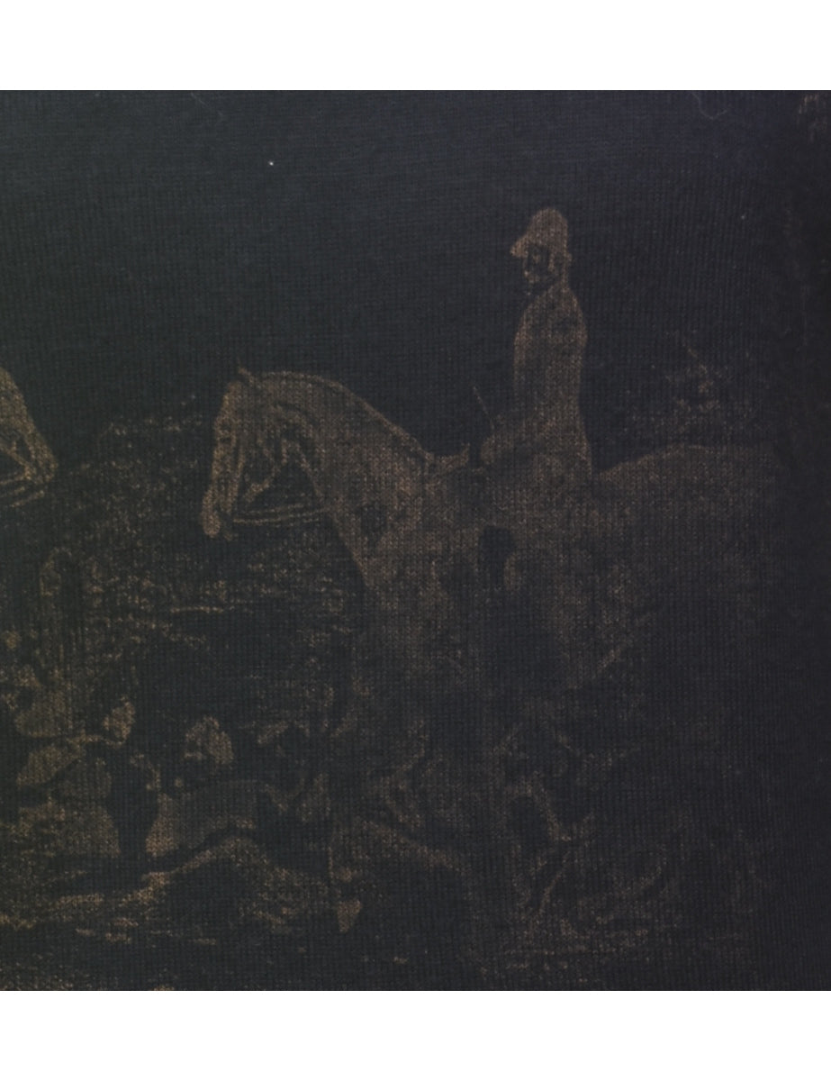 Patterned jumper in navy with removable shoulder pads.The size label mentions M but based on the actual measurements we consider it a size S.