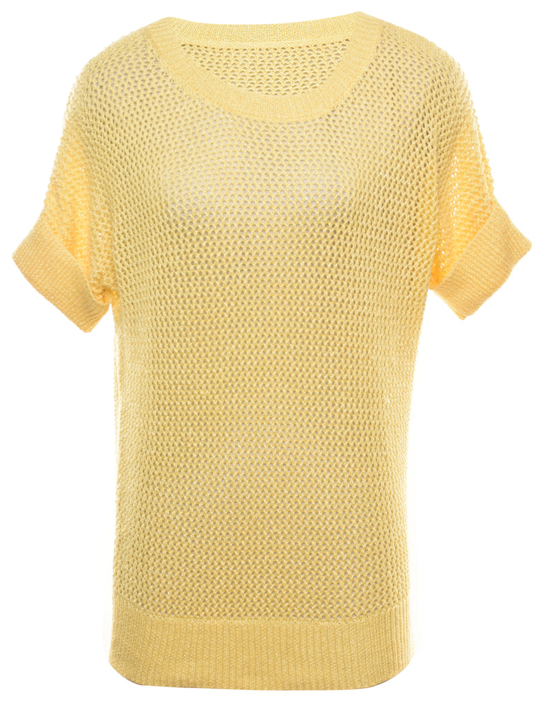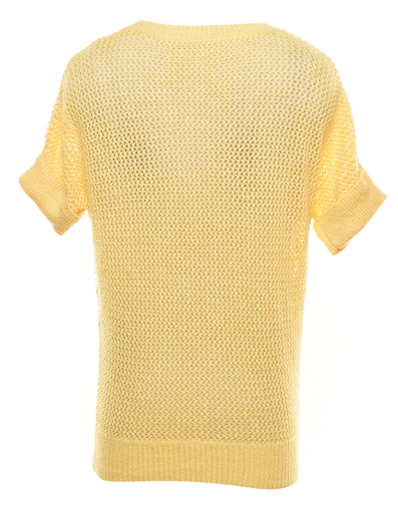 Classic jumper with crochet. Comes in yellow with a crew neck.