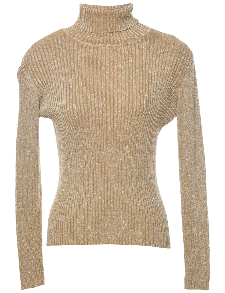 Lurex thread pattern turtleneck jumper in gold with a drop shoulder.