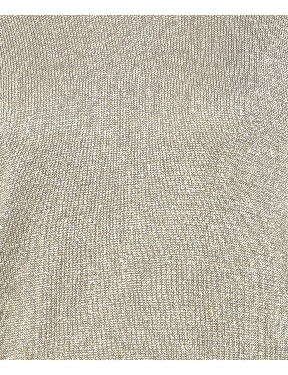 Lurex thread pattern turtleneck jumper comes in gold with removable shoulder pads.