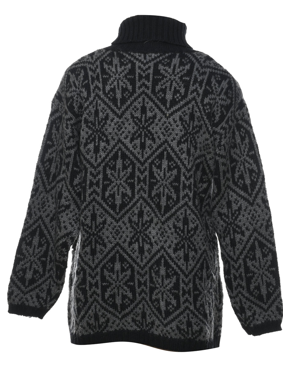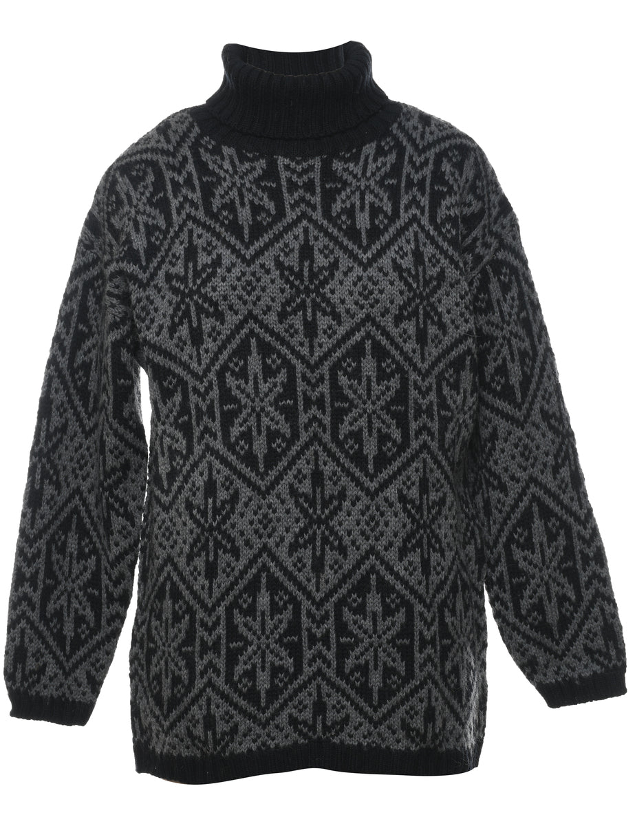 Vintage Geometric Pattern Turtleneck Jumper - L