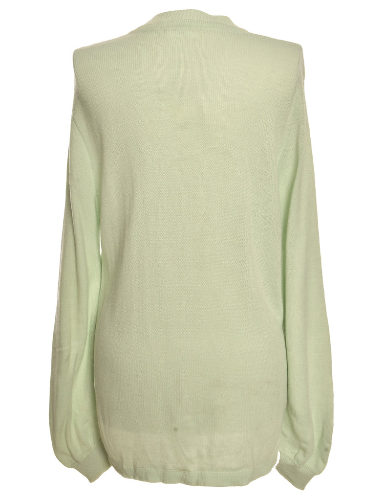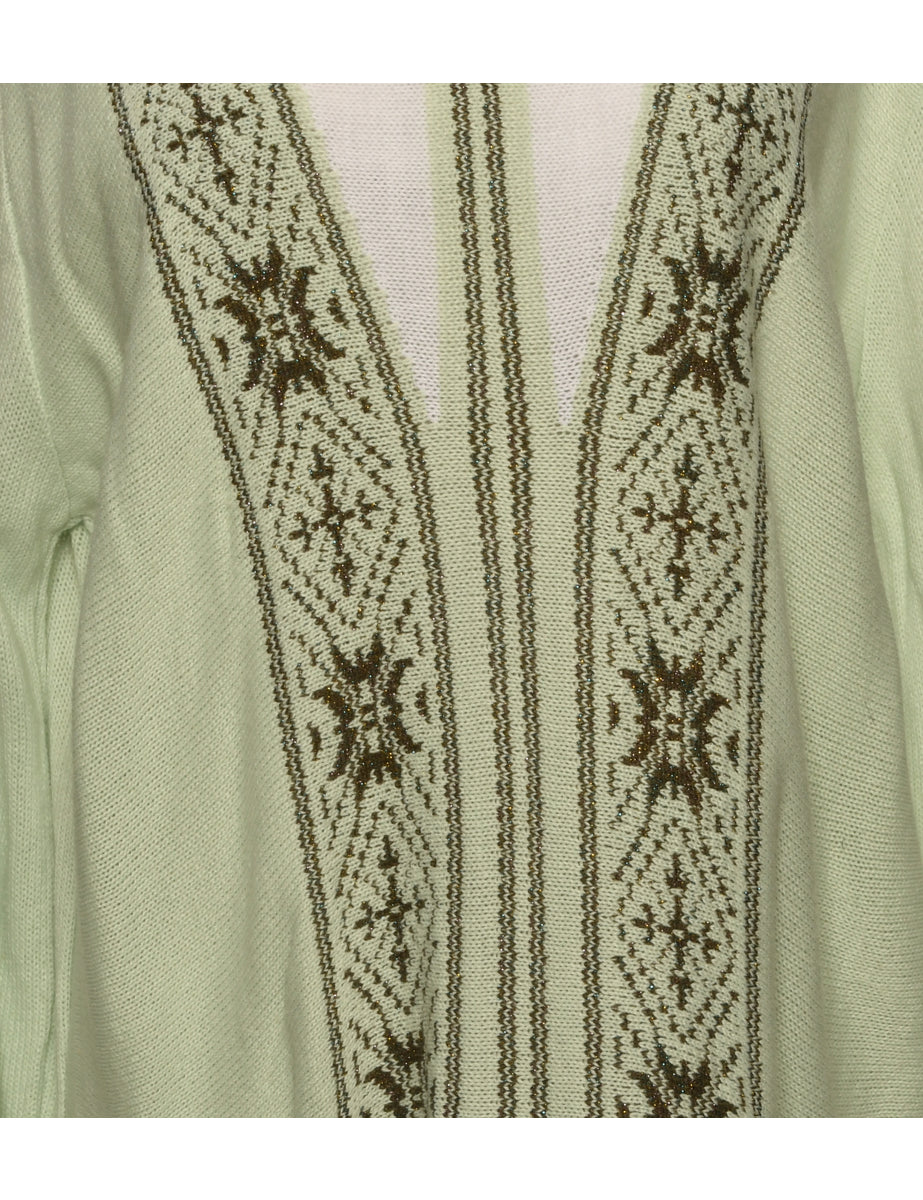 Lurex thread pattern light green jumper with a round neck and two pockets.
