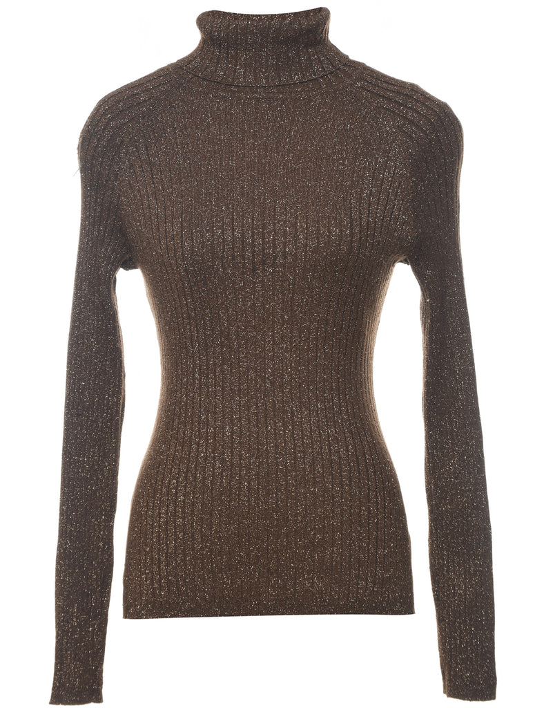 Vintage Lurex Thread Pattern Turtleneck Jumper - M