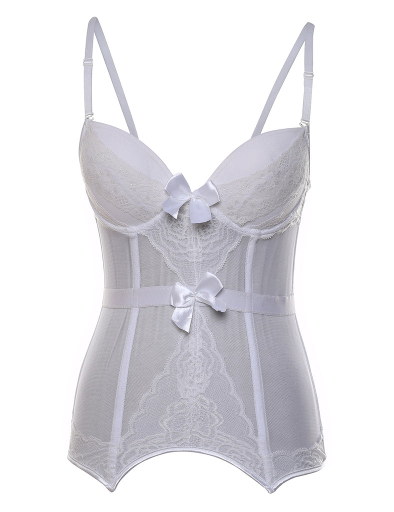 Lace bustier in white with adjustable straps and a built-in-bra.