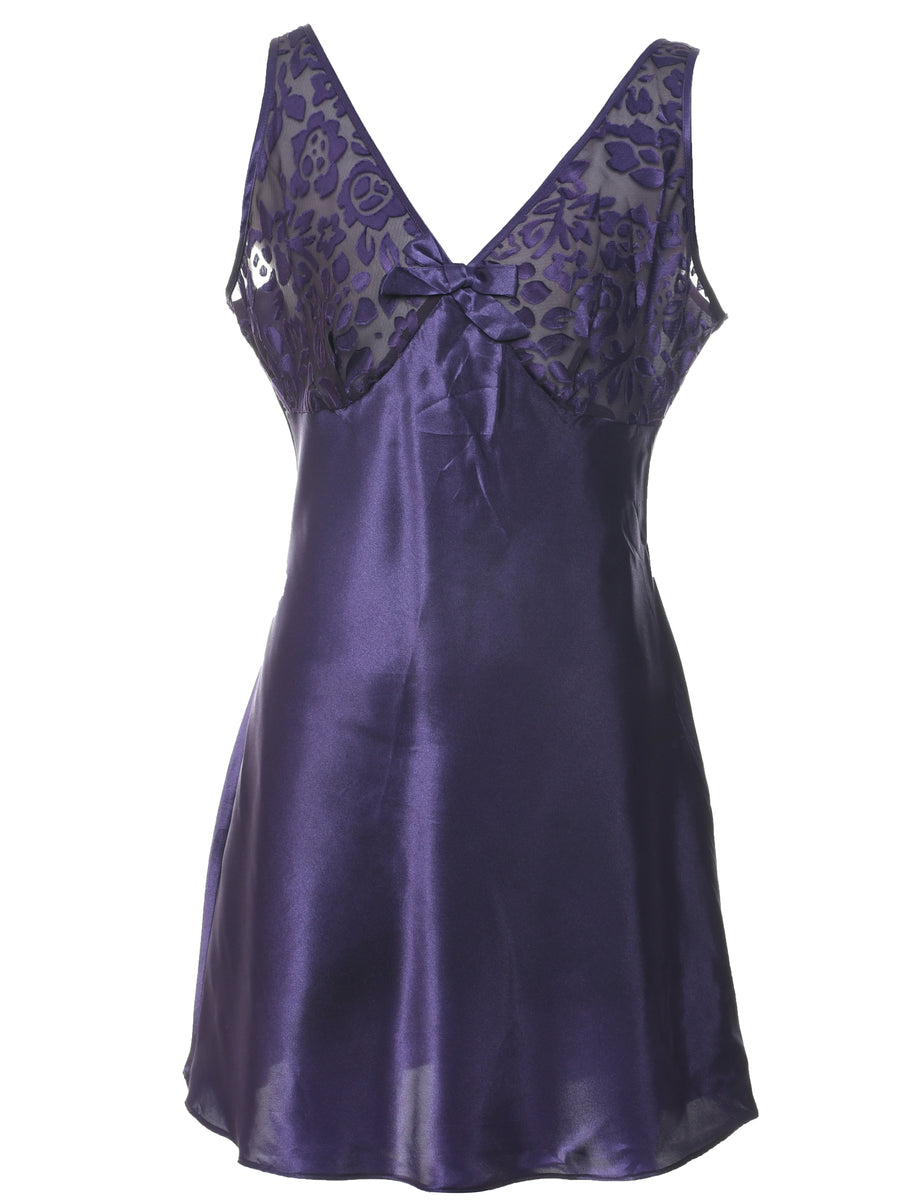 Feminine slip. Comes in purple with lace trim.