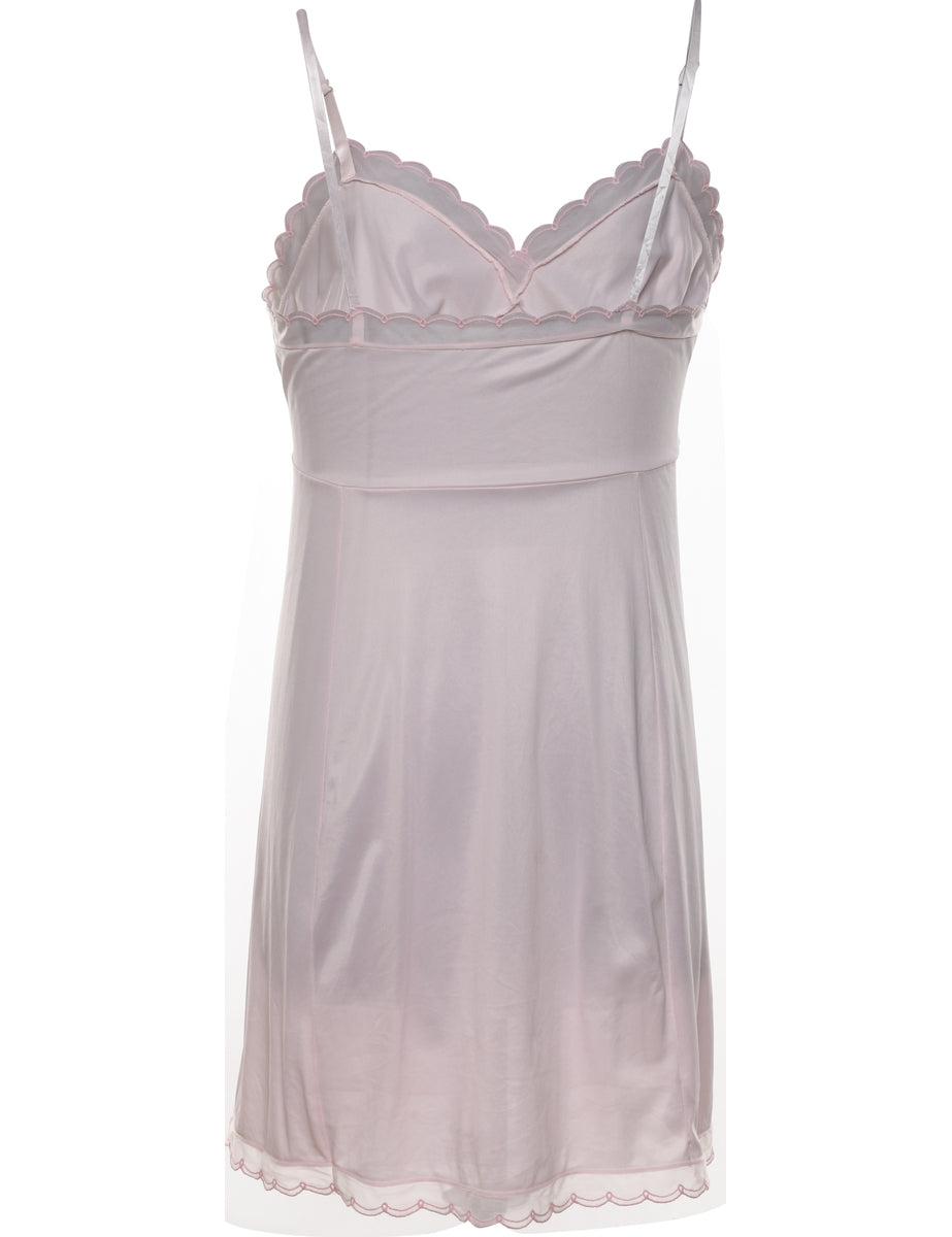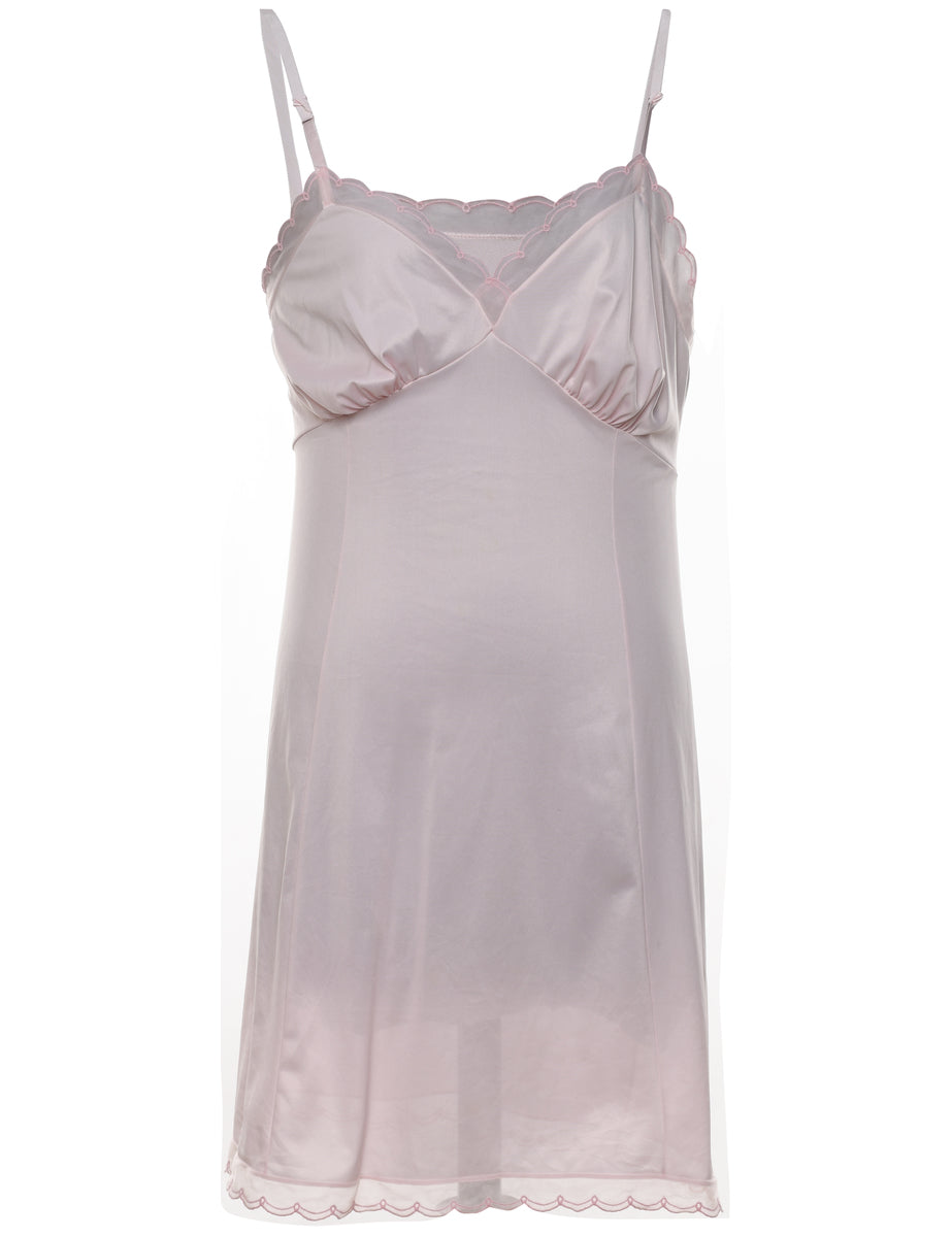 Pale pink slip with adjustable straps and lace trim.